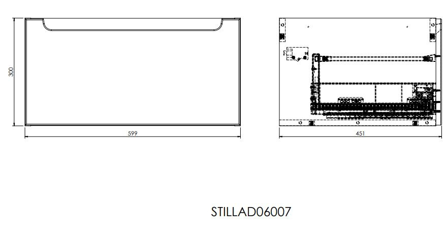 Stilla wall-hung bathroom cabinet with a 60x30x45 cm drawer and cover plate. The cabinet is part of the STILLA modular collection and can be combined with additional cabinets and shelves. This solution allows you to gain more storage space for all your bathroom accessories.