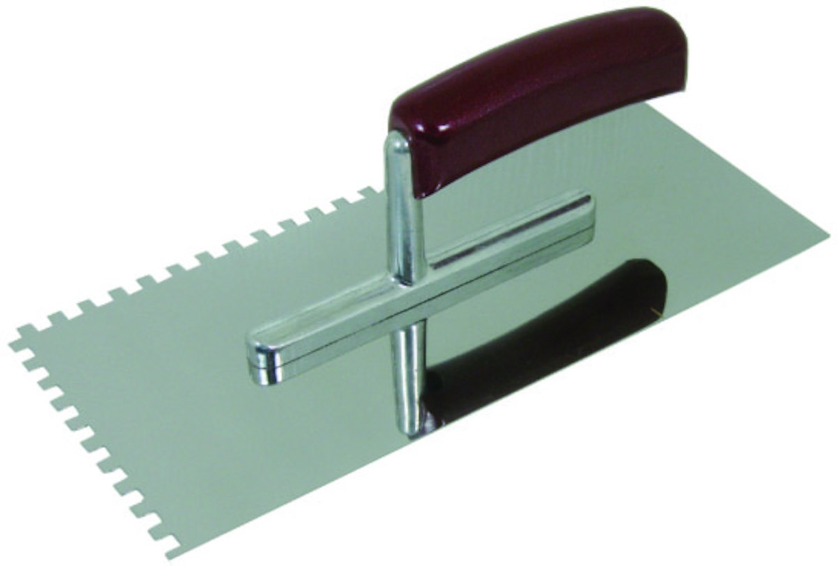 Notched trowel used for applying adhesives to tiles. 8 mm notch.