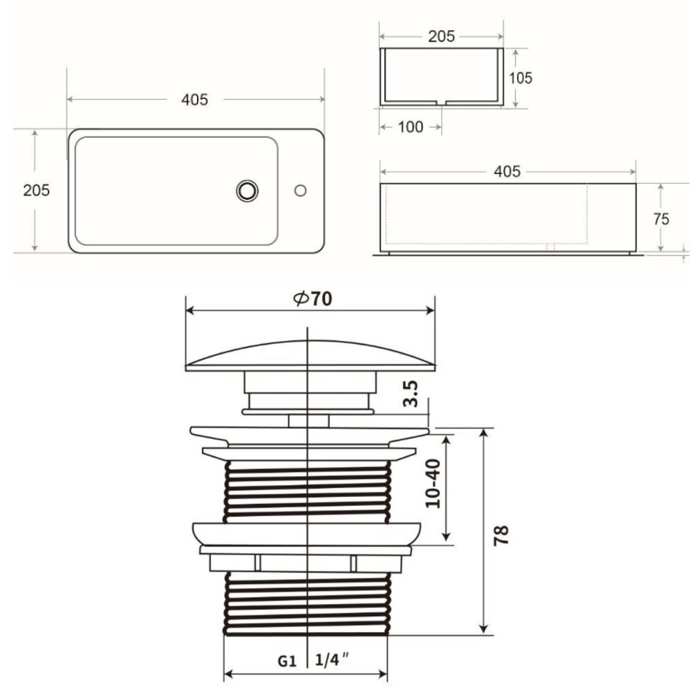 Features of the Brevis Wall-Mounted Washbasin Set, Matte Black with Right-Hand Tap Hole, 40.5x20.5x10.5cm + Waste Fitting (SATBRE4020SRBKM-SET2):