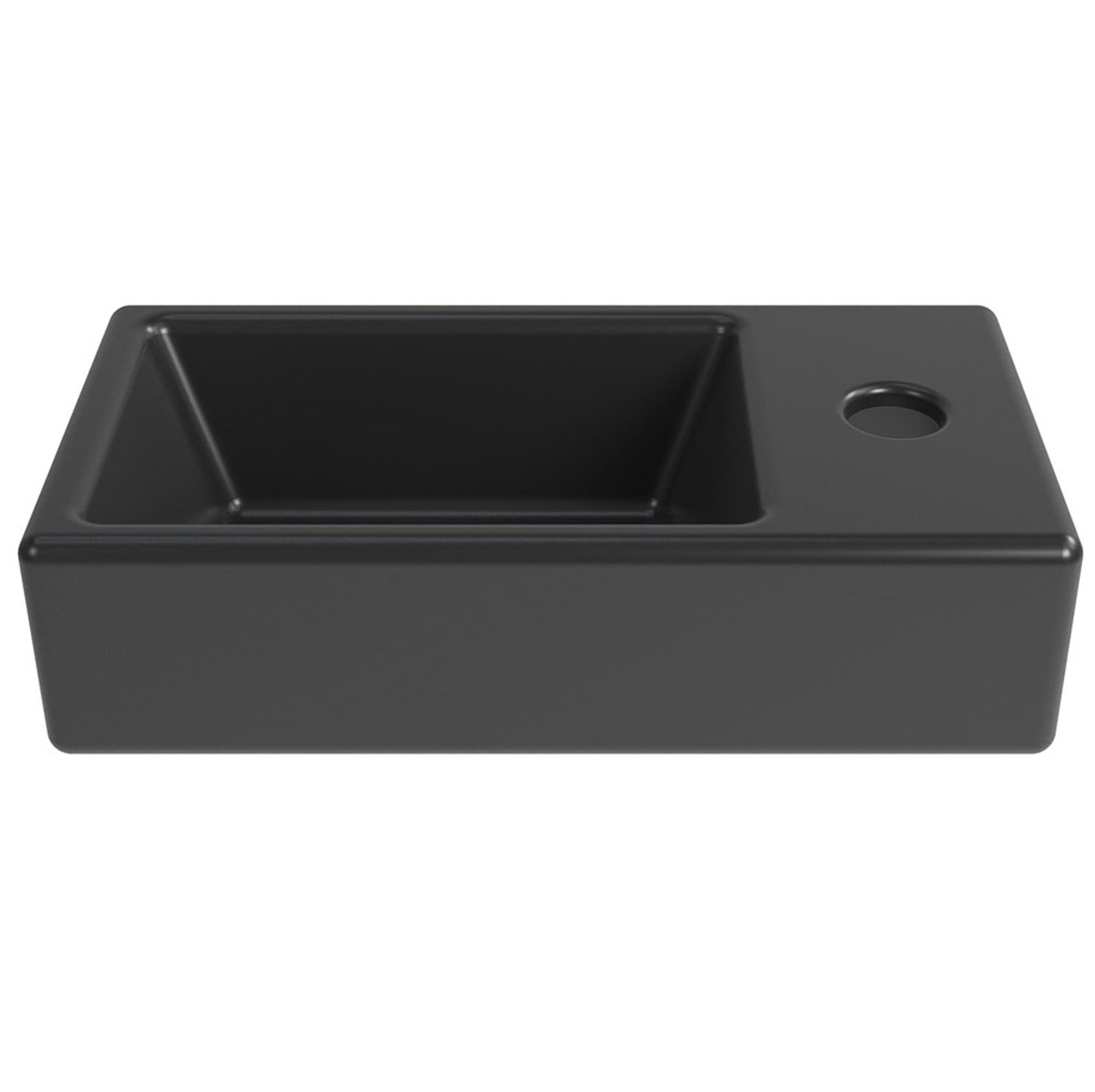 - Swiss Aqua TechnologiesBrevis Wall-Mounted Washbasin with Right-Hand Tap Hole, 40.5x20.5x10.5cm, Black (SATBRE4020SRBKM)
