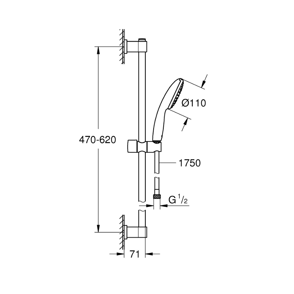 Grohe Vitalio Start 110 Shower Set with 60cm Bar + Hand Shower, Chrome (G27942001)