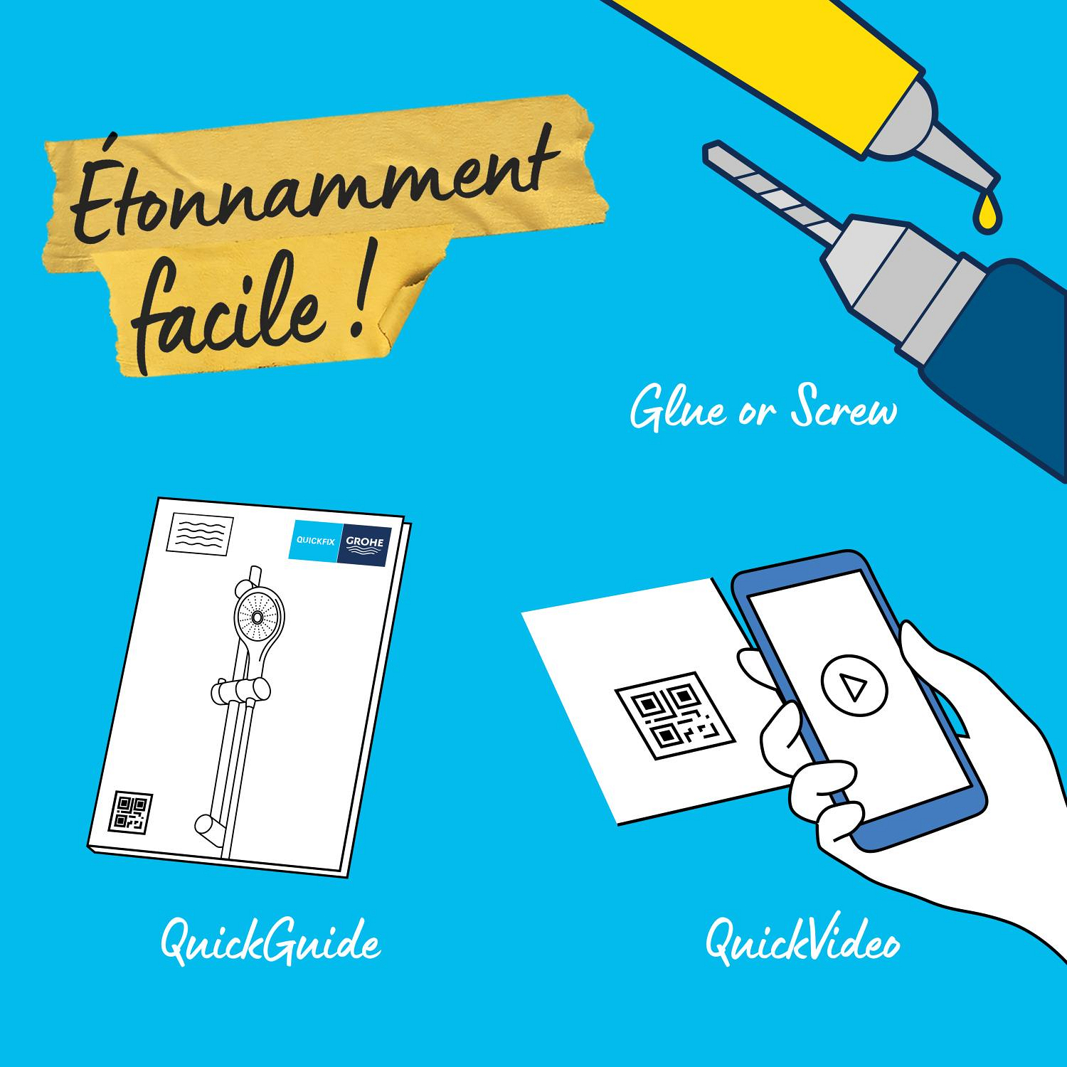 - Suitable for screw fixing (screws and plugs included) or gluing (GROHE QuickGlue S 41 247 000 sold separately - 2 tubes required)