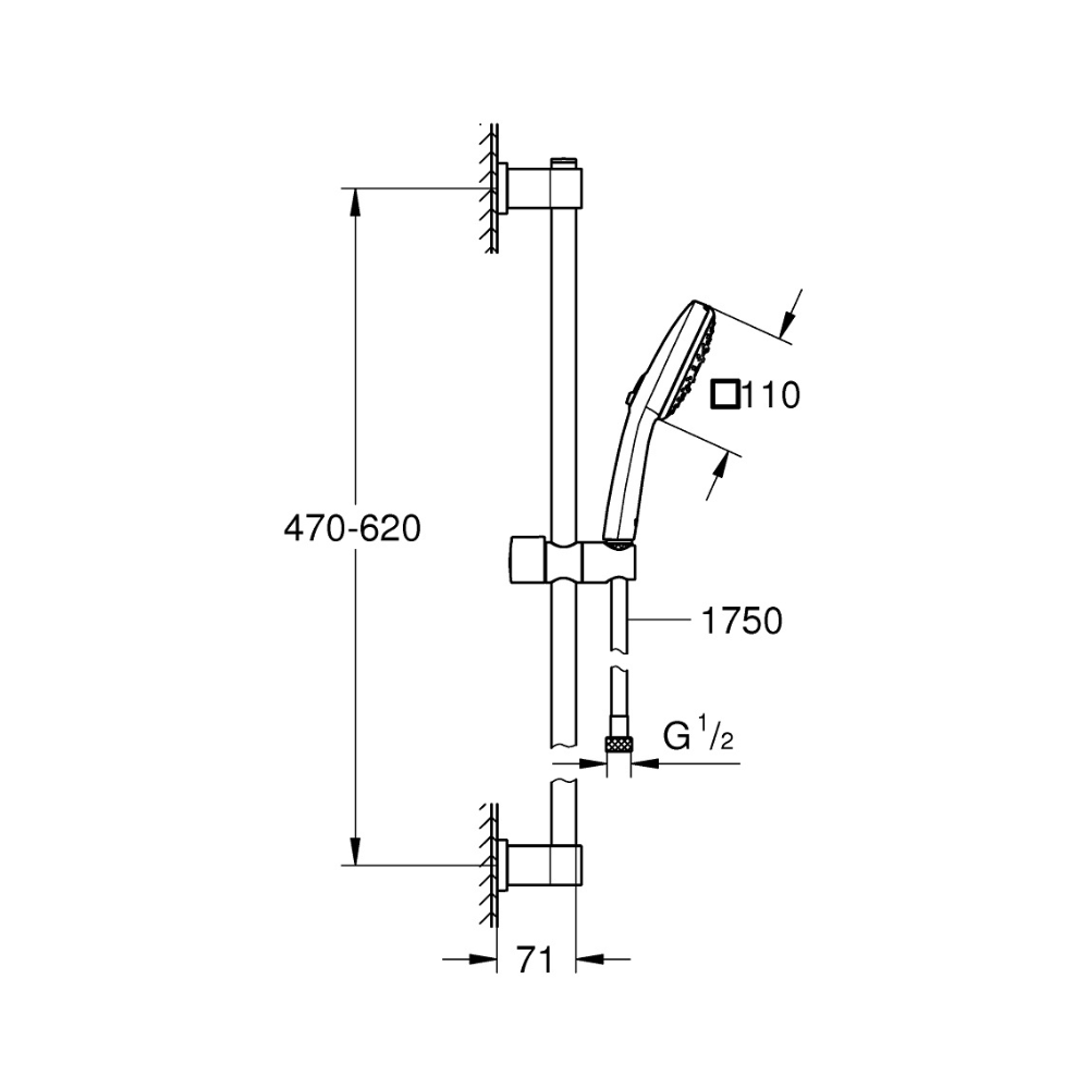 Features of the Grohe Vitalio Comfort 110 Shower Set with Rail + 3-Jet Hand Shower, Chrome (G26096001):