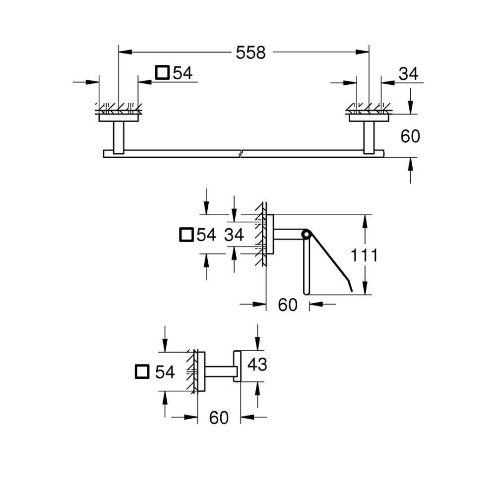 - Can be screwed to the wall (screws and wall plugs included) or glued (order separately 2 x GROHE QuickGlue A2 Reference: 41 128,000)