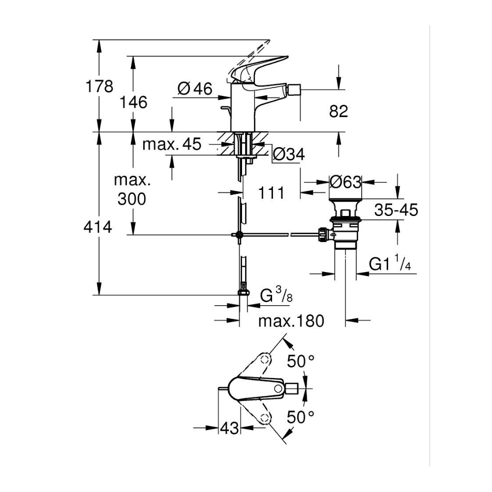 Features of the Grohe Swift single-lever bidet mixer, chrome (G24332001):