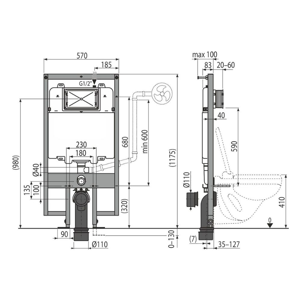 - Product type: slim frame for wall-hung toilets