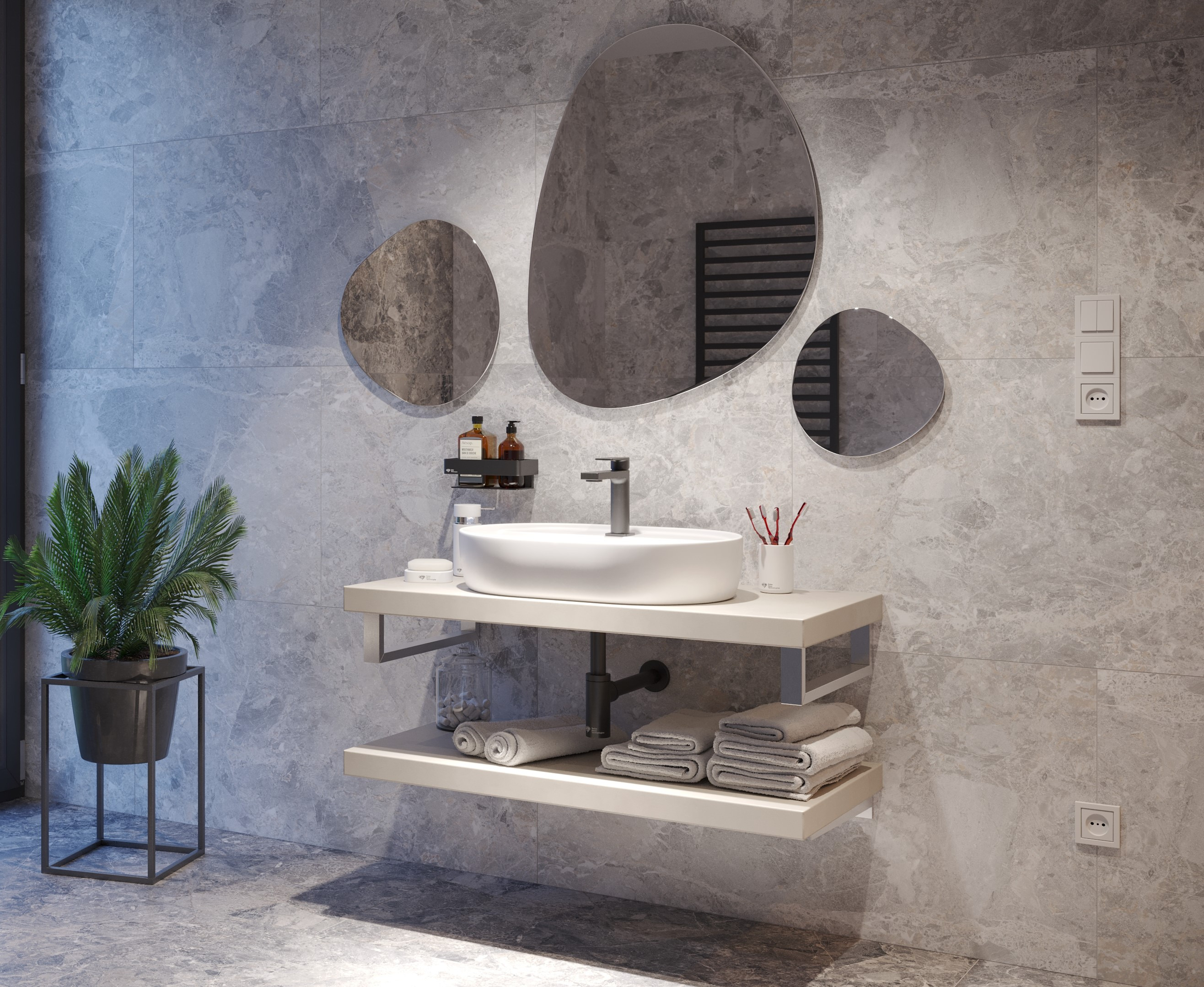 Infinitio countertop washbasins are manufactured differently from standard ceramic washbasins. Their production requires the use of a different material and a much higher firing temperature.