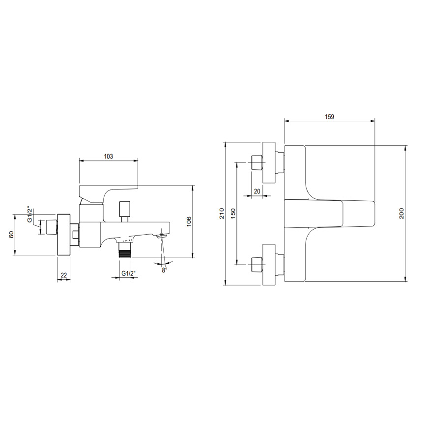 Villeroy & Boch Architectura Square Single lever bath mixer, Chrome (TVT12500100061)