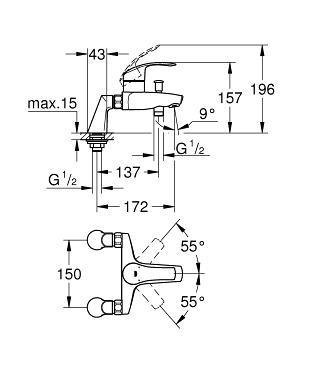 Grohe Pack EUROSMART NEW Single lever Bath/shower Mixer + Tempesta 100 Complete 2 jets shower set (33303002-TEMPESTA)