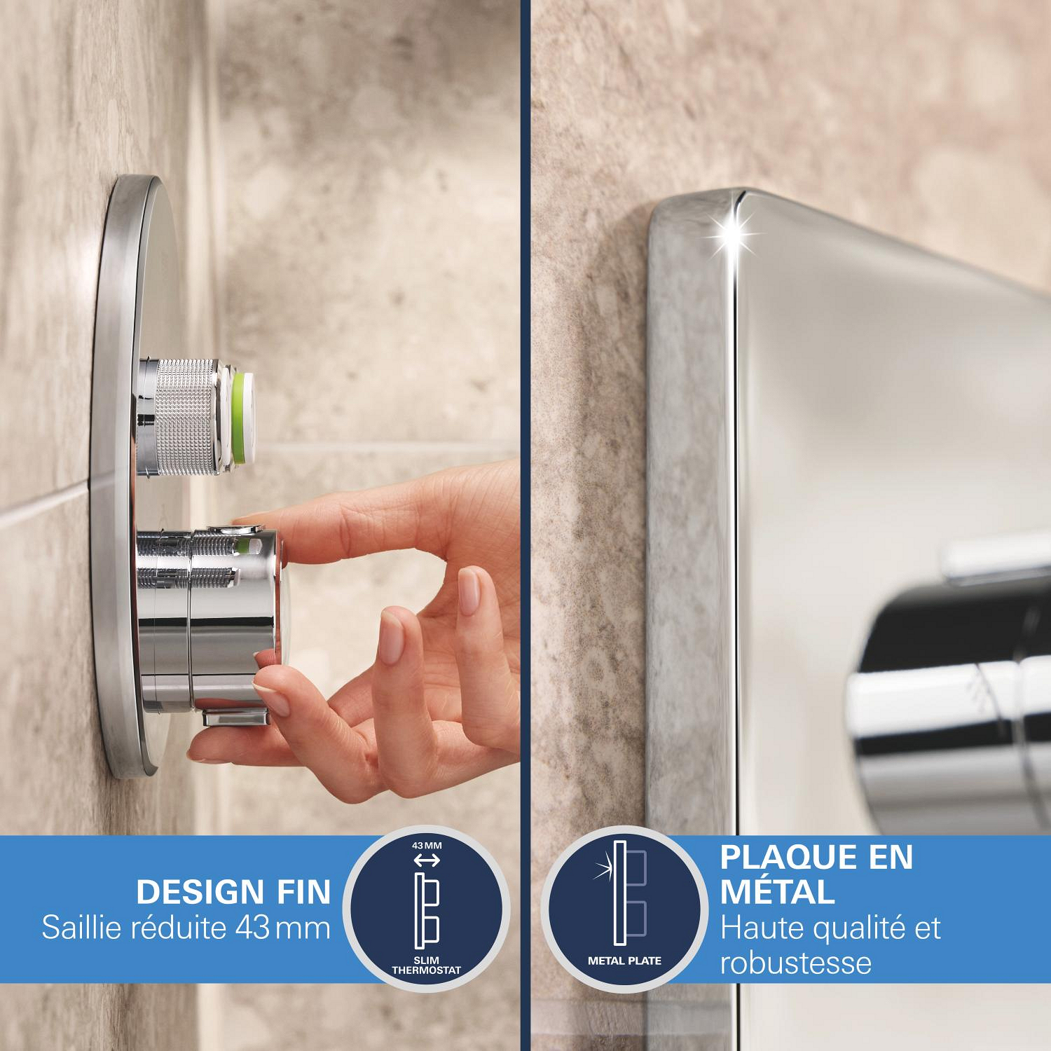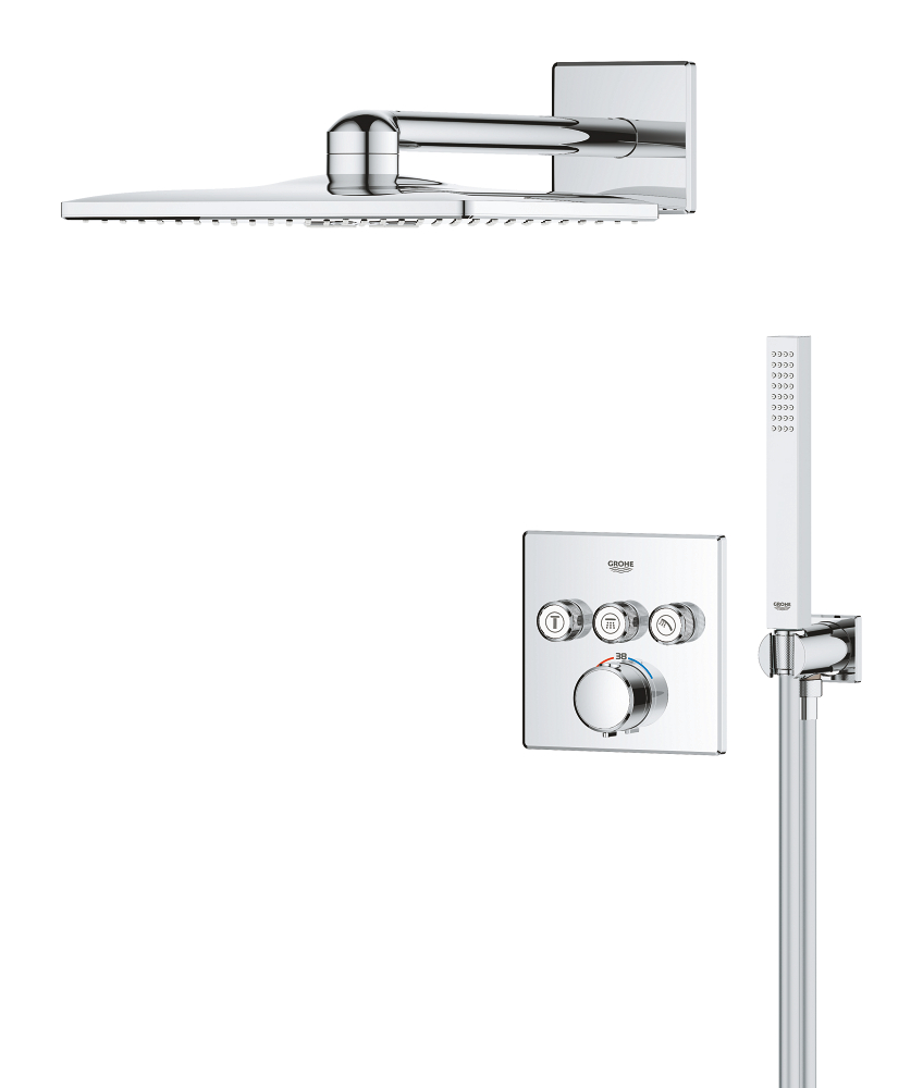 Grohe Precision SmartControl Concealed Shower Set Thermostatic Fascia + 2-Jet Shower Head + Hand Shower, Chrome (G34875000)
