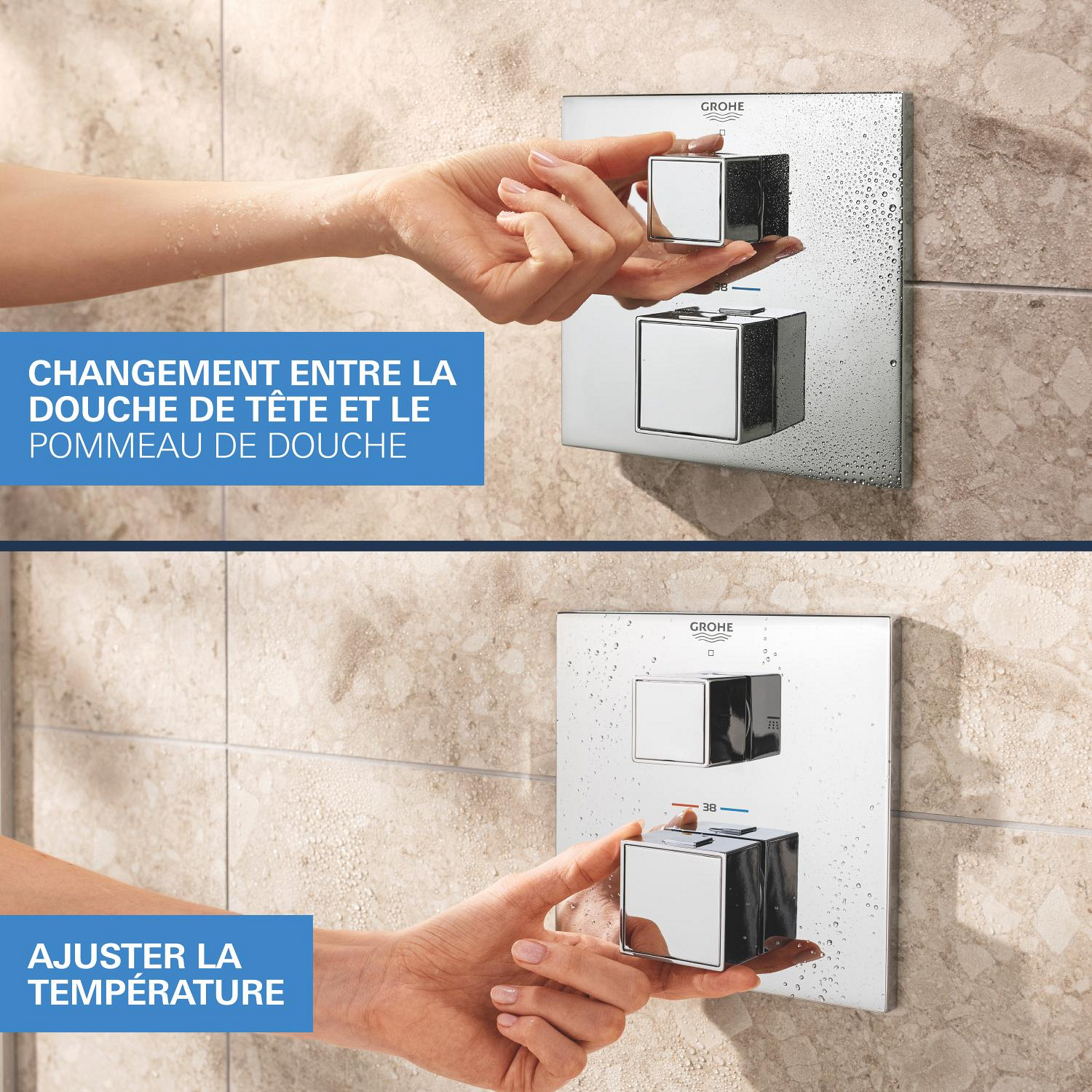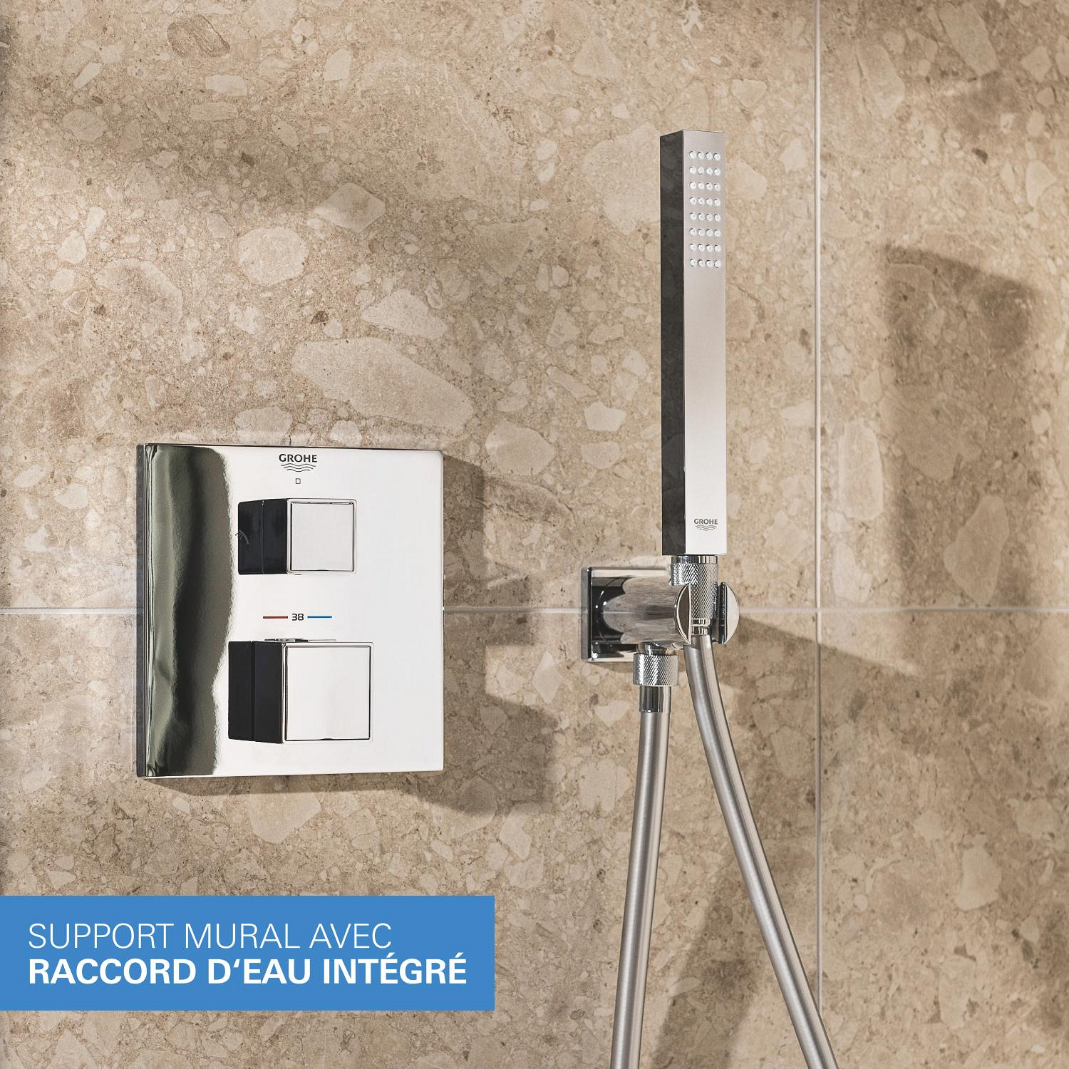 - GROHE SafeStop® function: Limits temperature to 38°C for enhanced safety, ideal for families.