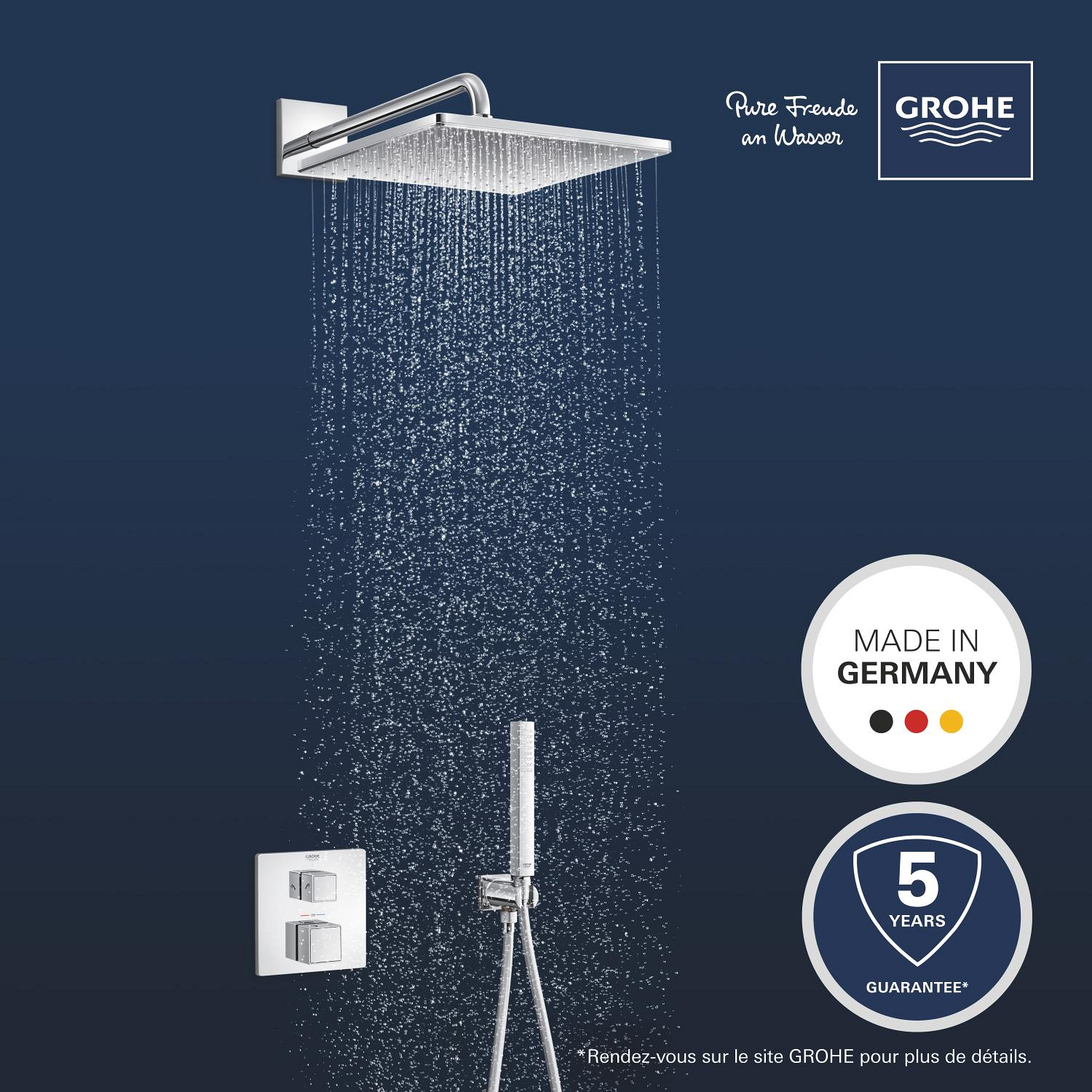 - GROHE TurboStat® technology: Maintains the desired temperature with precision, preventing sudden changes during showering.