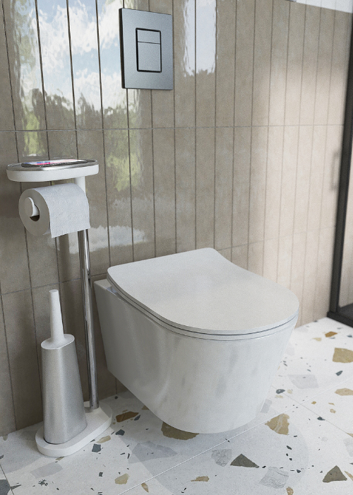 To complete your WC setup, the Joseph Joseph EasyStore toilet brush—featuring a freestanding toilet roll holder and a flexible Flex Steel brush head—is the must-have accessory you need.