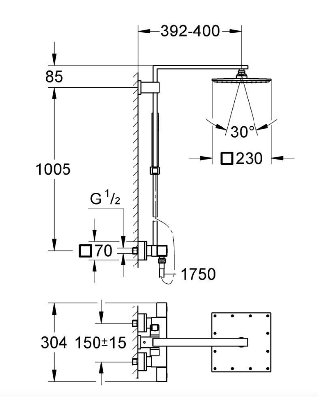- GROHE SafeStop Plus optional temperature limiter at 43°C included