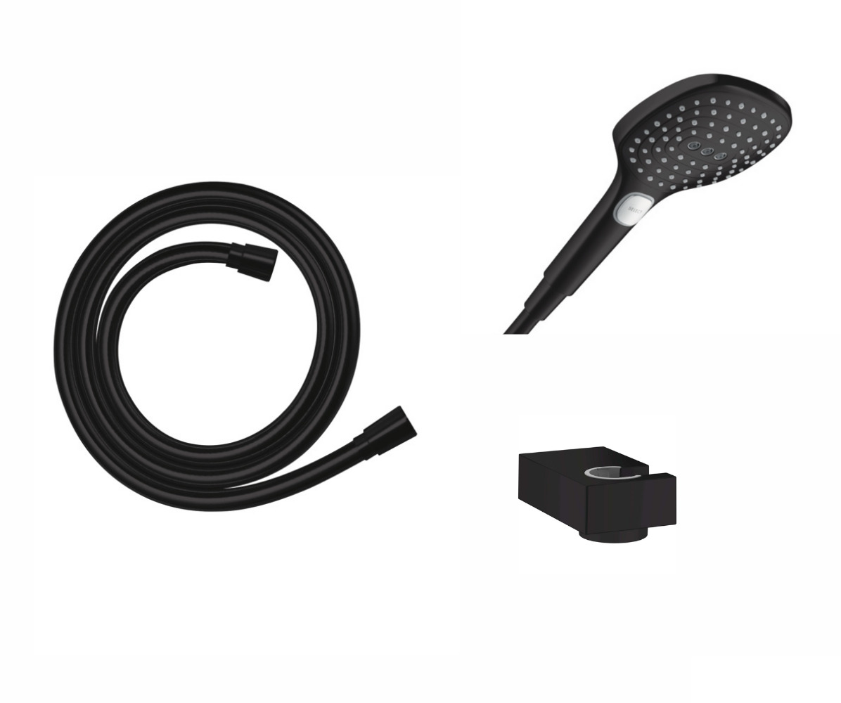 Hansgrohe Raindance Select E300 Matte Black Shower Set with 3-Jet Hand Shower, Isiflex Shower Hose, and Wall Mount (RaindanceNoirMat-2)