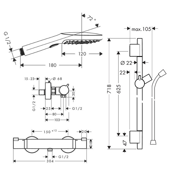 - Hand shower diameter (cm):12