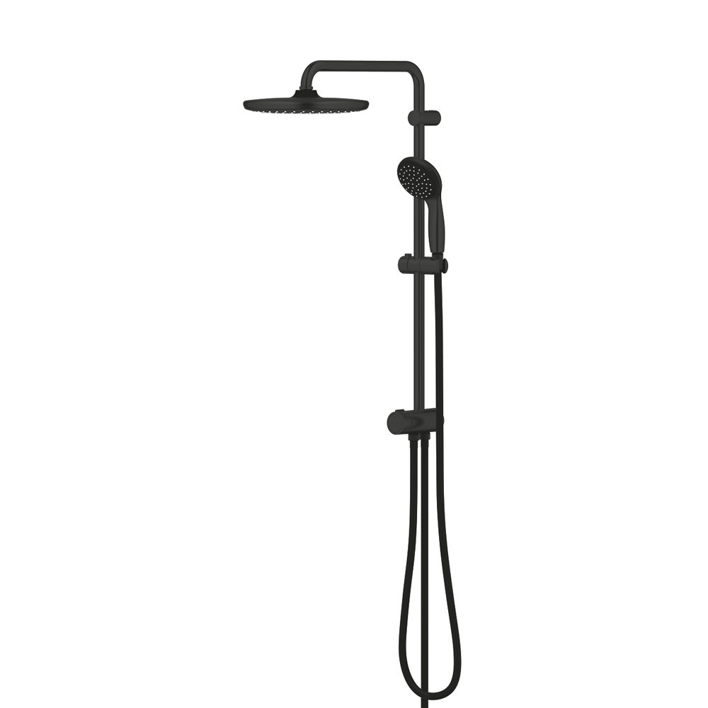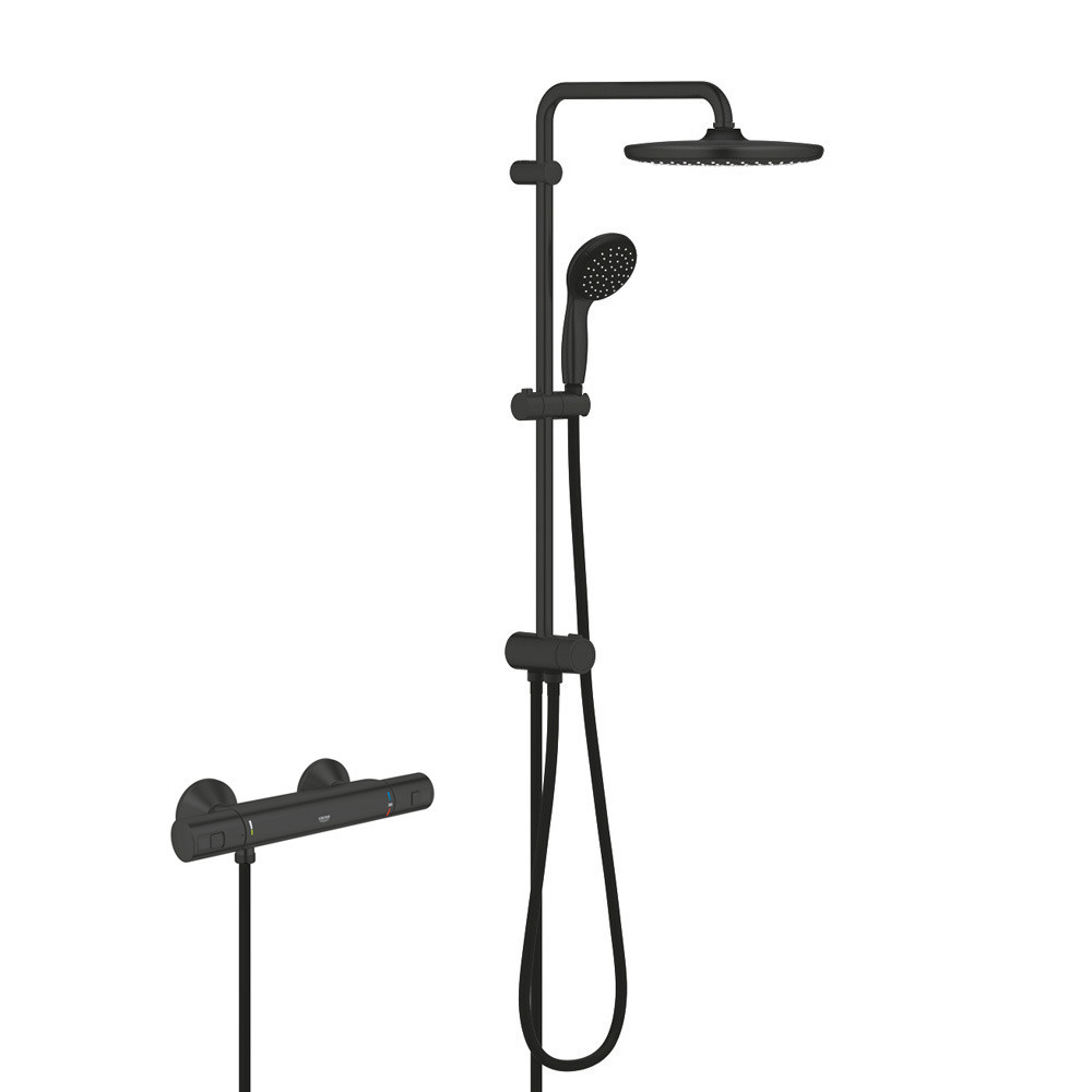 Grohe Shower Set Vitalio Start System 250 Thermostatic Mixer + Shower Column, Head Shower XXL 250 mm + 1-Spray Hand Shower, Matt Black