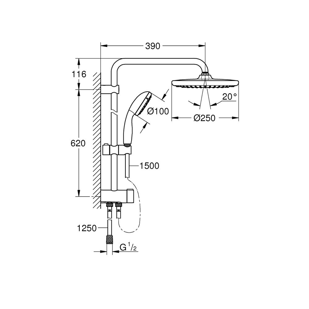 - Hand shower diameter (cm):25