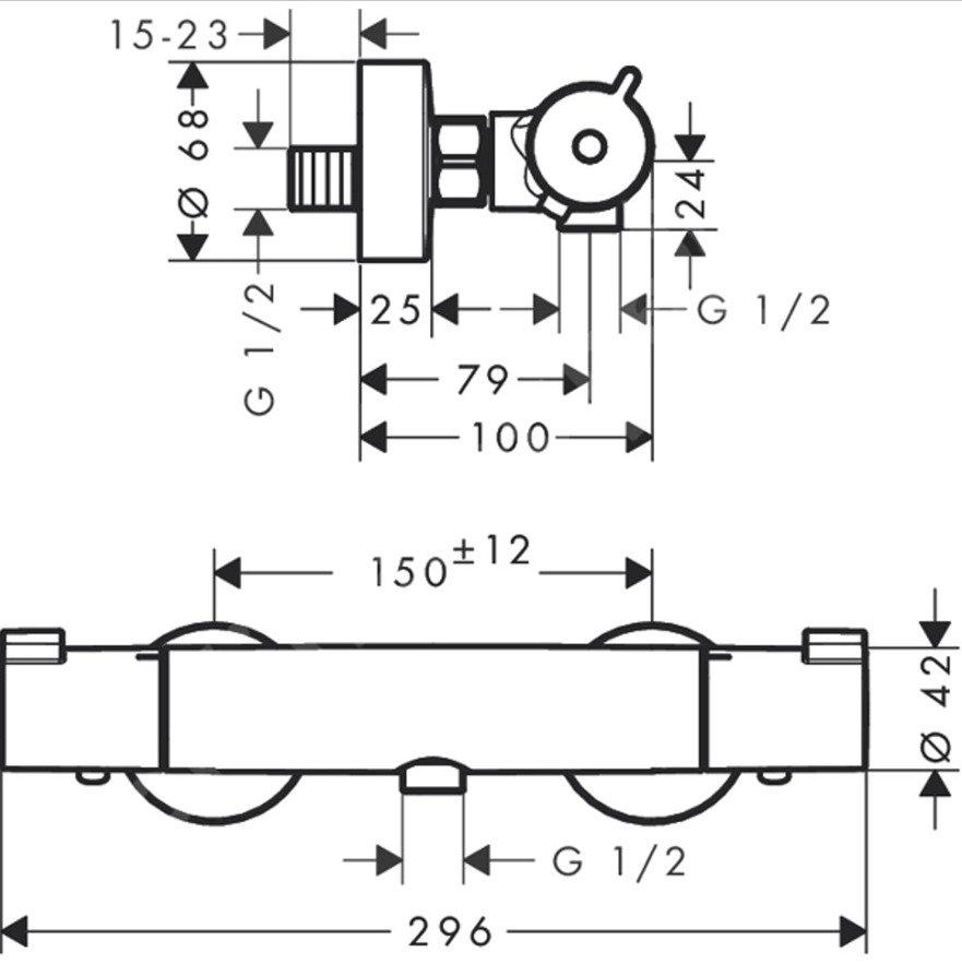 Hansgrohe Shower Set Croma Select S 110 1 Spray with Unica'Croma 0.65m Rail + Thermostatic Shower Mixer, Chrome (13211000-Crometta3)