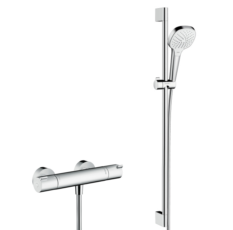 Hansgrohe Shower Set Croma Select E 3 jets 110 Vario with Unica'Croma Rail 0.90m + Thermostatic Shower Mixer, Chrome (13211000-CromaSelect