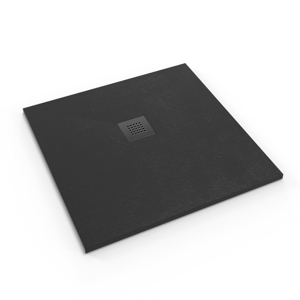 Features of the 80x80cm Square Shower Tray with Trap, in Cast Marble, Black, Swiss Aqua Technologies B-Way (SATALEK80Q):