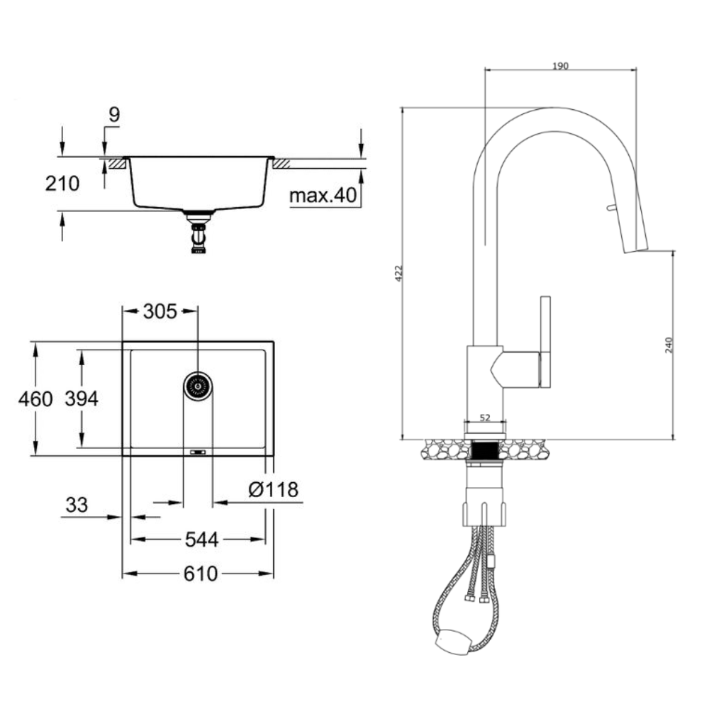 Grohe K700U Composite Sink Features Grohe K700U + Ceramia Timeless Single-lever Sink Mixer (G31655TML2BCP-SET):