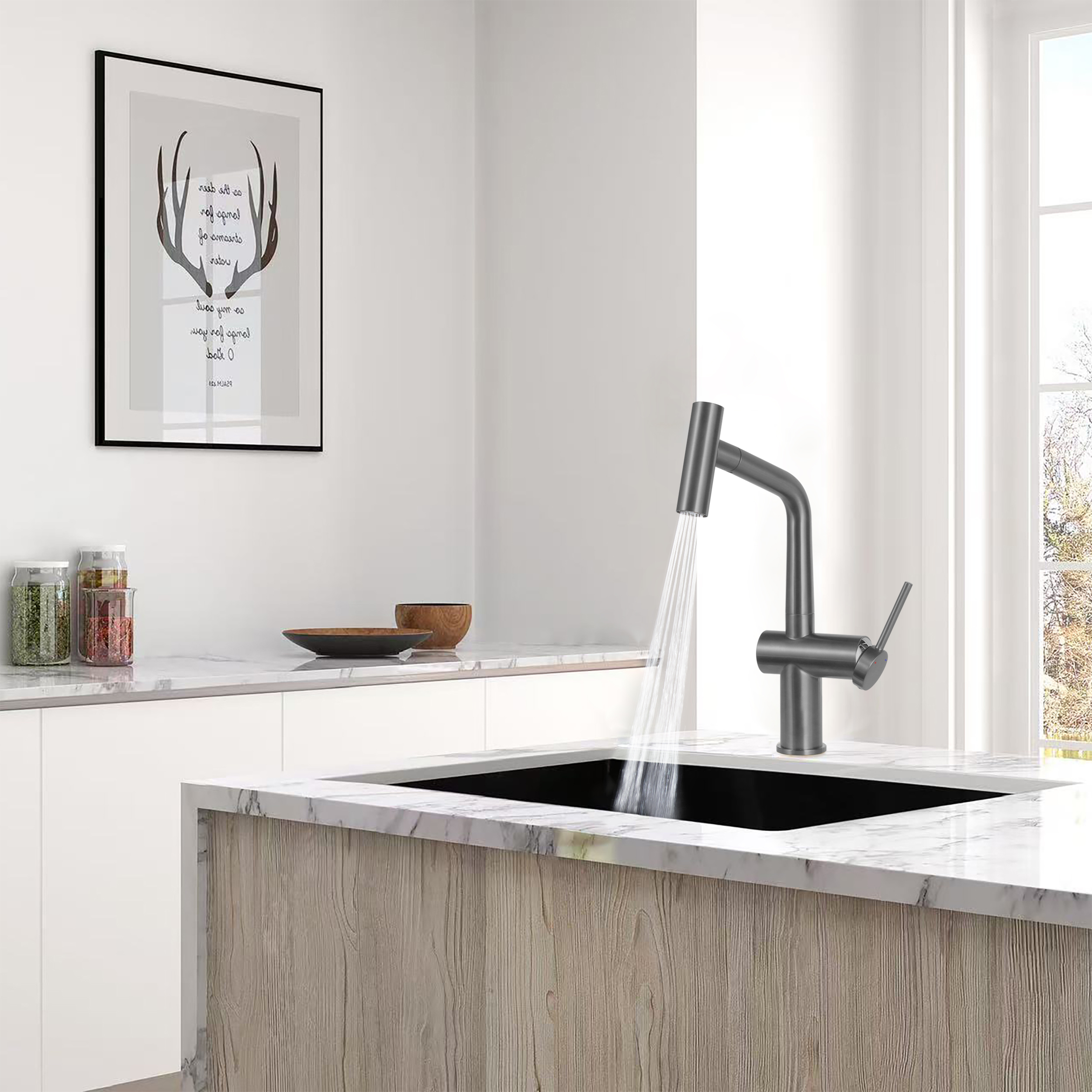 - Ceramia Timeless Single Lever Sink Mixer Tap in Stainless Steel with Pull-Out Spray, Single Hole, Brushed Gunmetal (TMLKF185BGM)