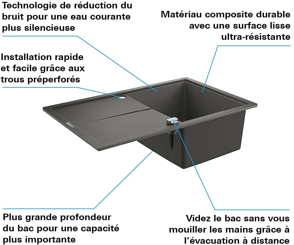 - Grohe K400 Quartz Composite Sink with Reversible Drainer 780x500 mm, Granite Grey (31639AT0)