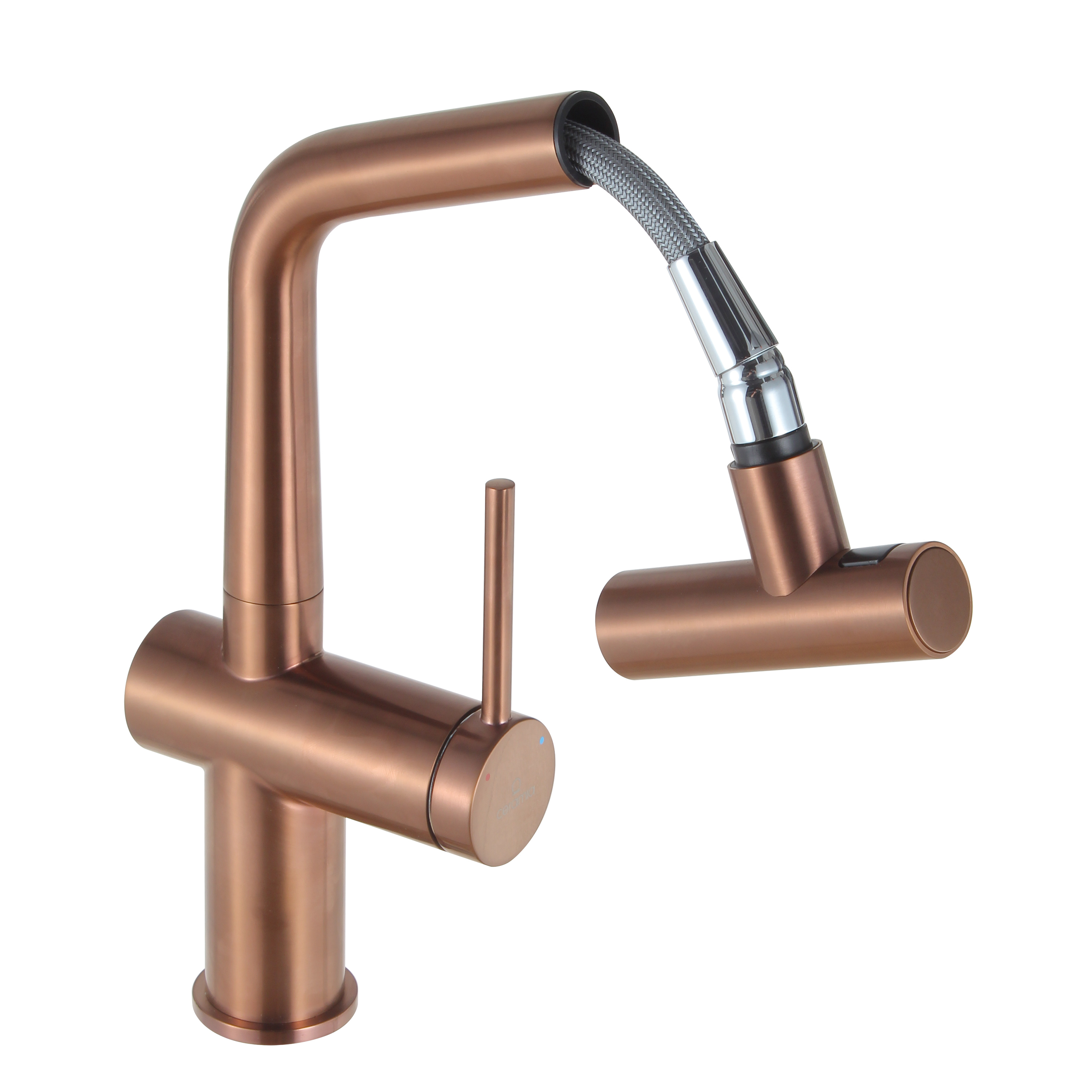 - Ceramia Timeless Single Lever Sink Mixer Tap in Stainless Steel with Pull-Out Spray, Single Hole, Brushed Gold (TMLKF185BG)