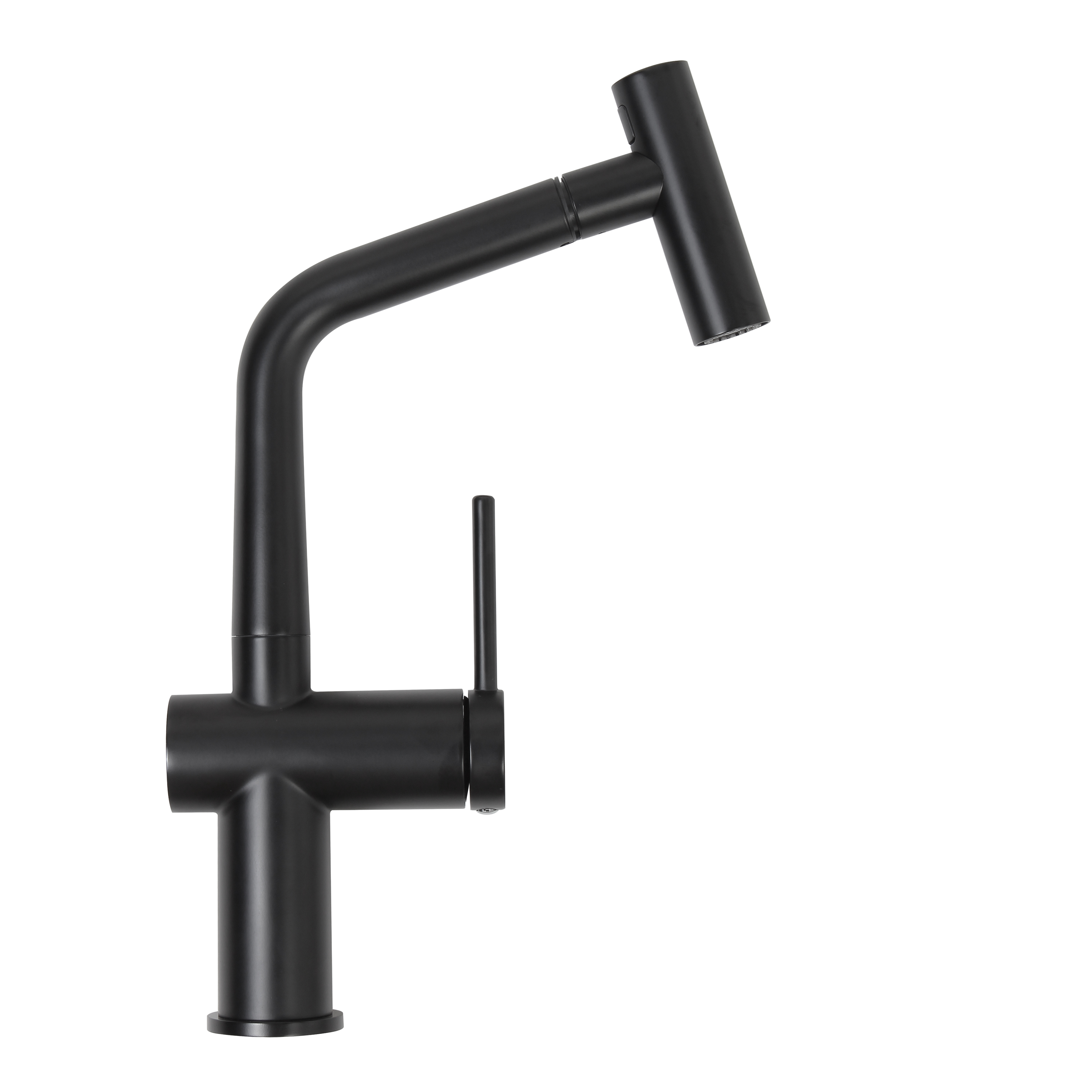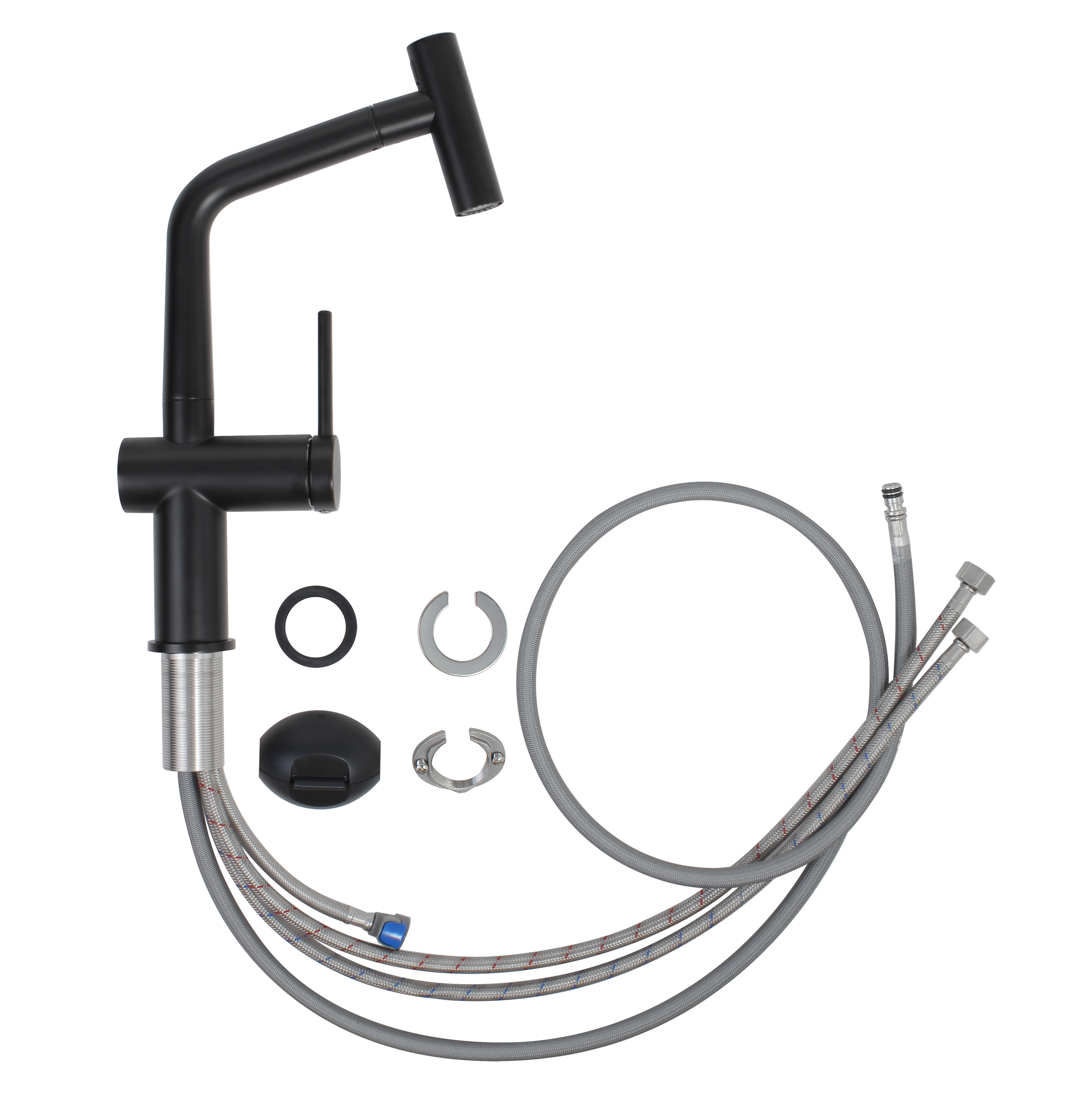 - Ceramia Timeless Single Lever Sink Mixer Tap in Stainless Steel with Pull-Out Spray, Single Hole, Matt Black (TMLKF185BM)