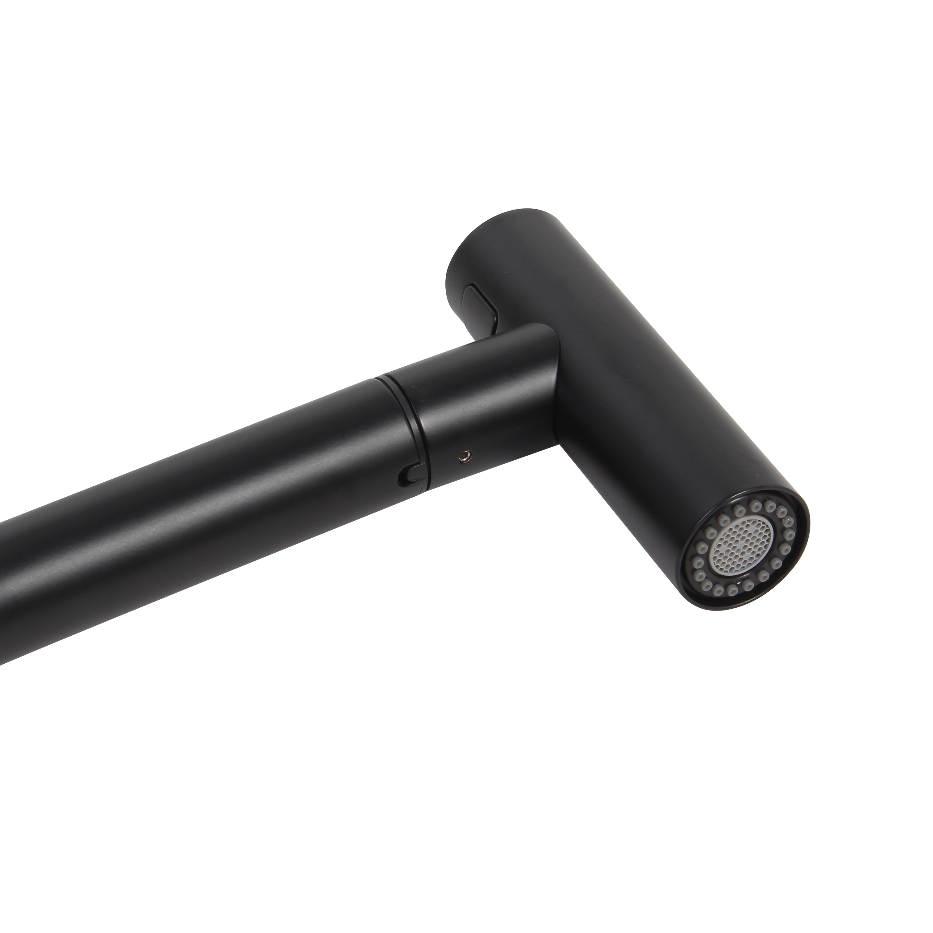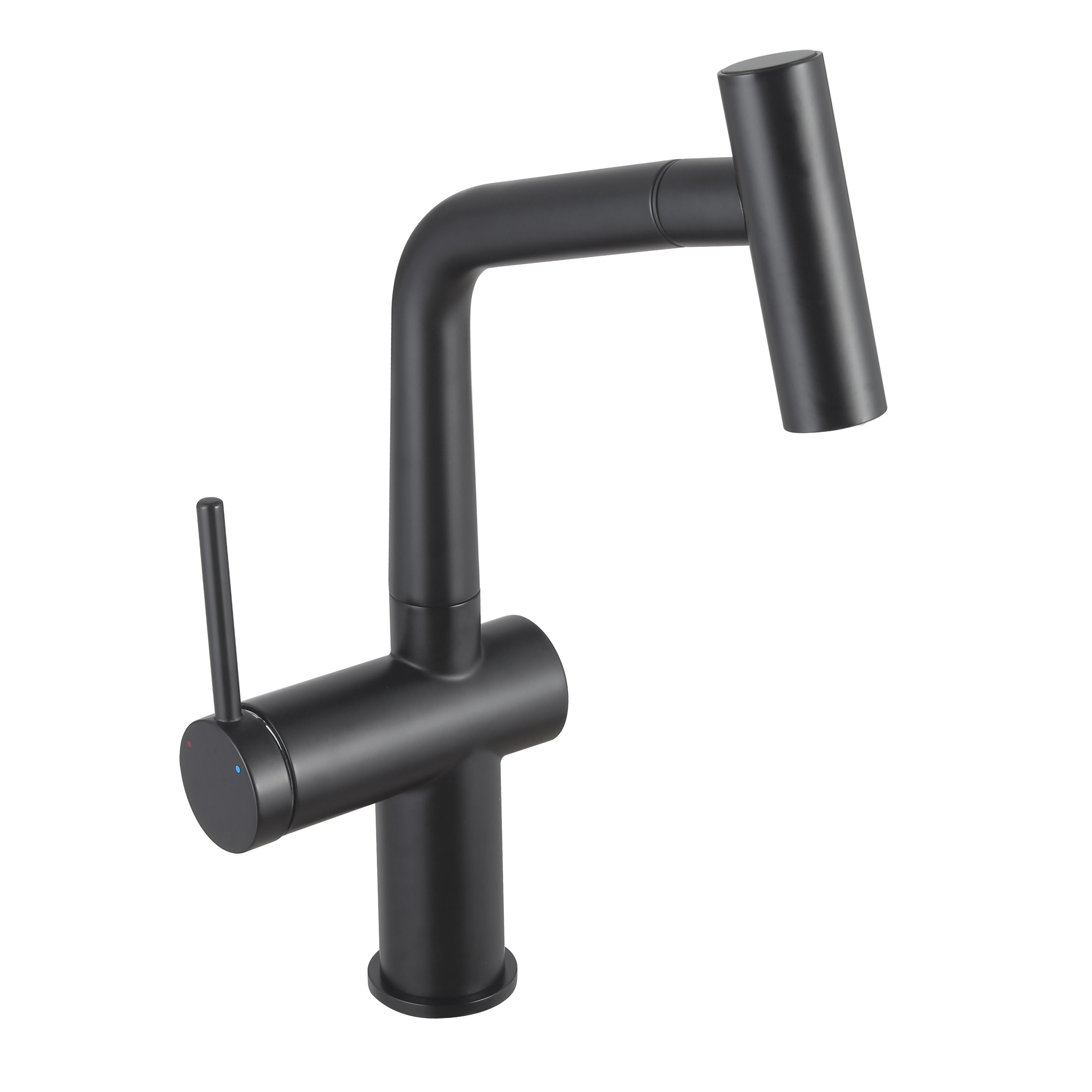 Timeless single-lever sink mixer in stainless steel with pull-out spray, single hole, black matt (TMLKF185BM):