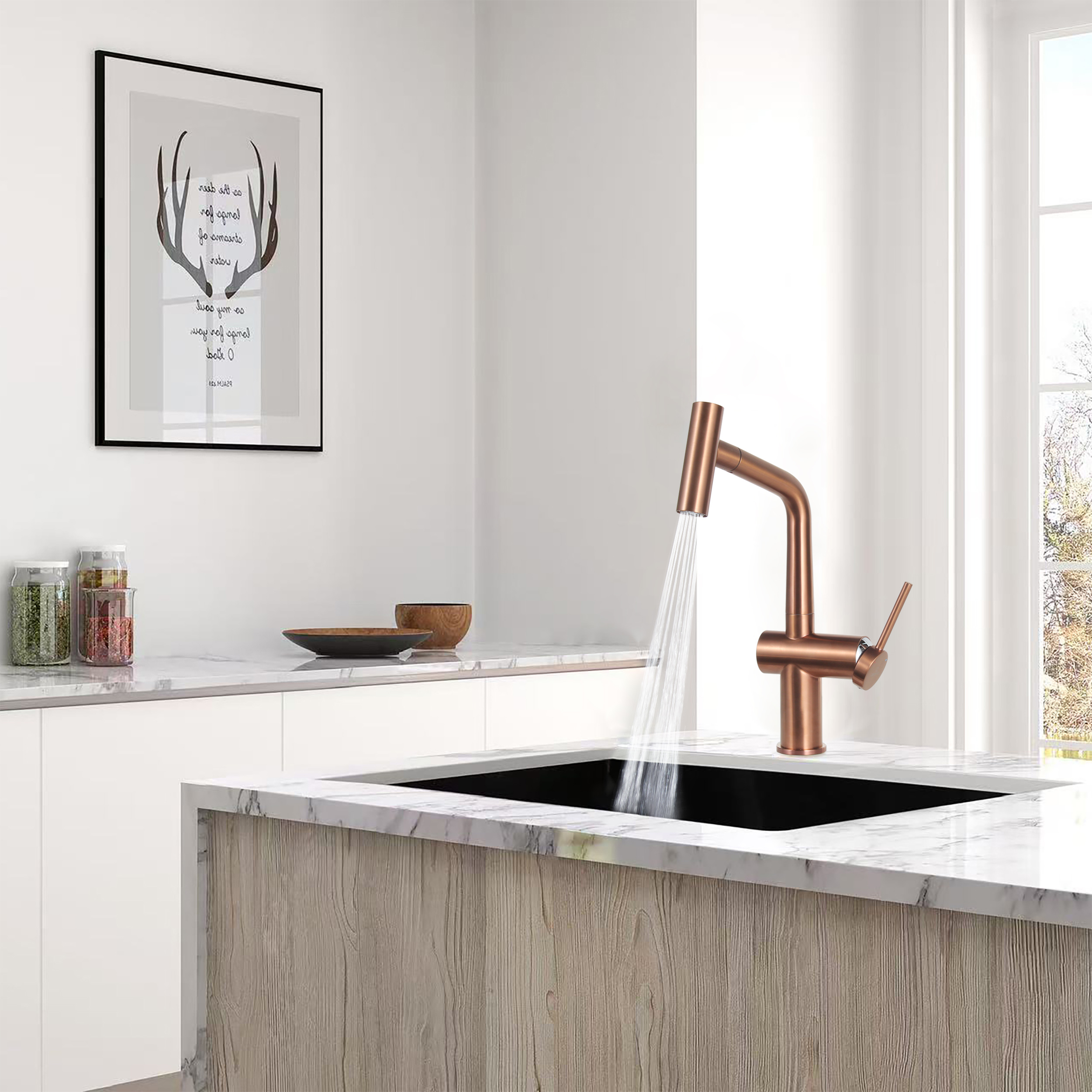 - Ceramia Timeless single-lever sink mixer in stainless steel with pull-out spray, single hole, brushed copper (TMLKF185BCP)