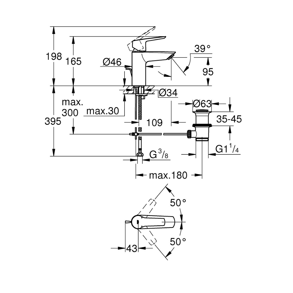 Features of the Grohe Start single-lever basin mixer, size S, matte black (242092432):