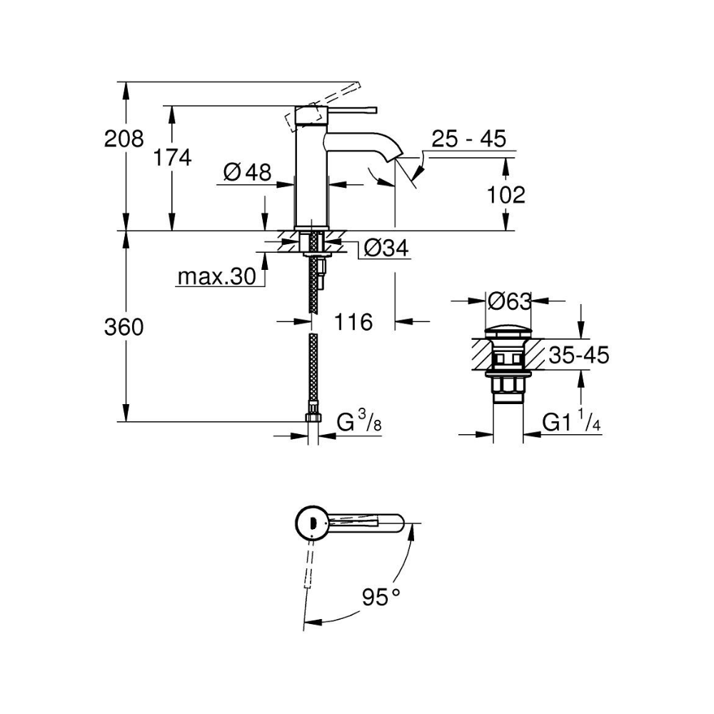 Features of the Grohe Essence single-lever basin mixer, size S, chrome (G23797001):