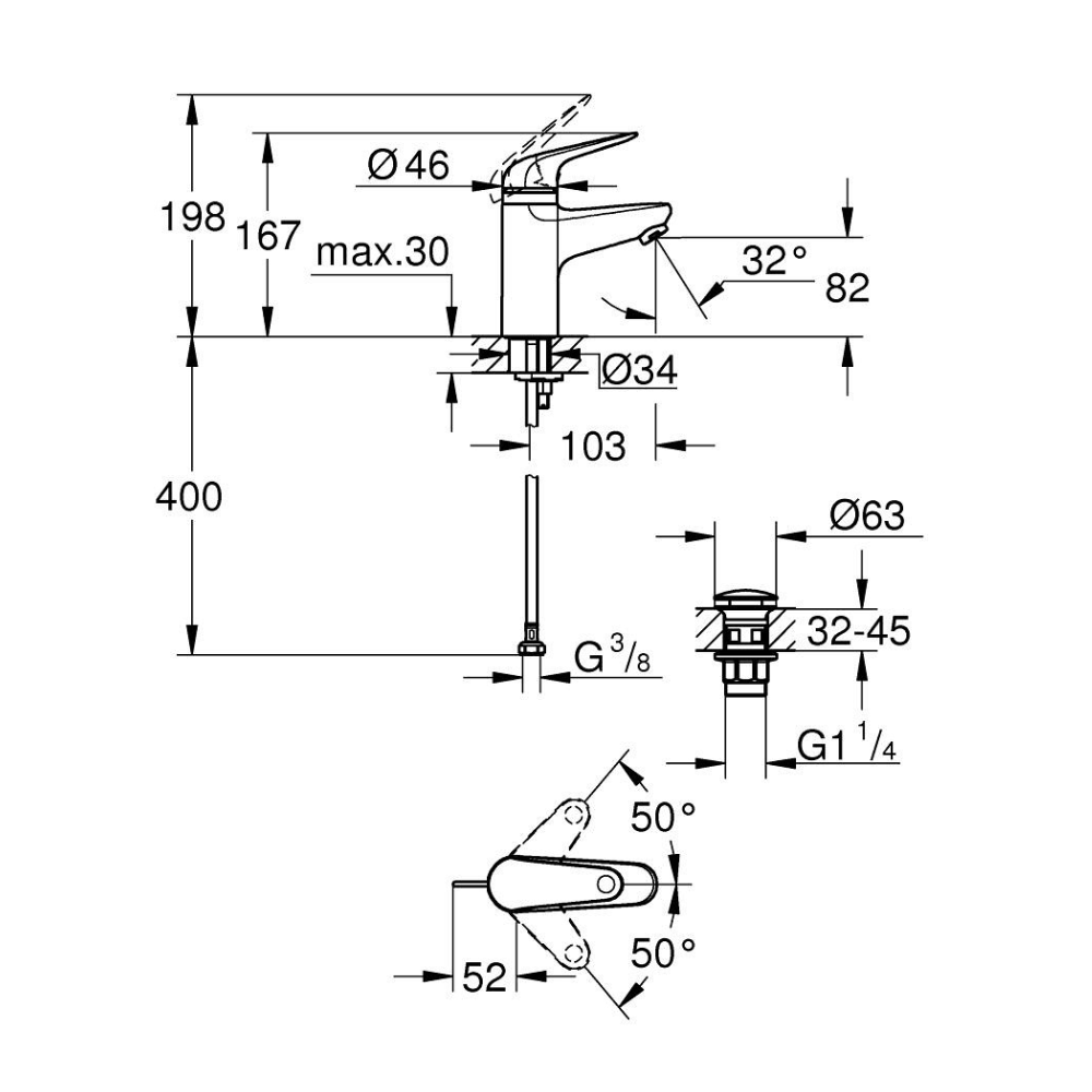 Features of the Grohe Swift single-lever basin mixer, size S, chrome (G24319001):