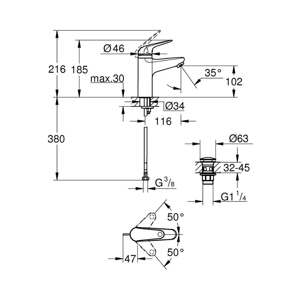 Features of the Grohe Swift single-lever basin mixer, size M, chrome (G24327001):