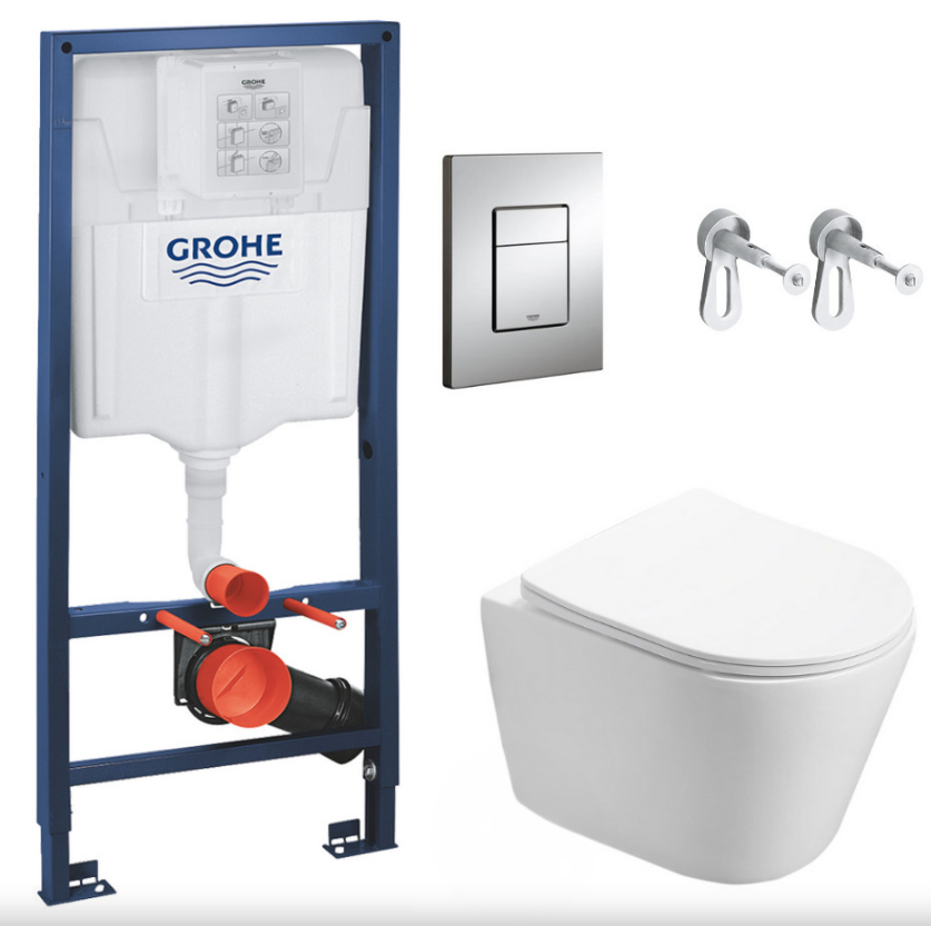 Grohe Toilet set Frame + Swiss Aqua Technologies Infinitio rimless WC, invisible fixing + Chrome flush plate (RSLINFI1)