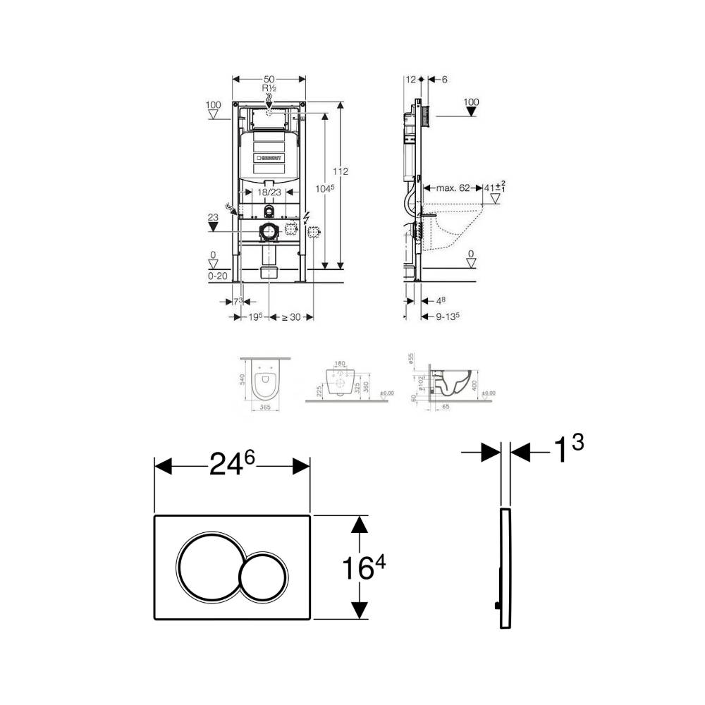 • 2-volume flush, suitable for Geberit Sigma01, Sigma20, Sigma50, Sigma60, Sigma70, Sigma80 or Bolero trigger plates