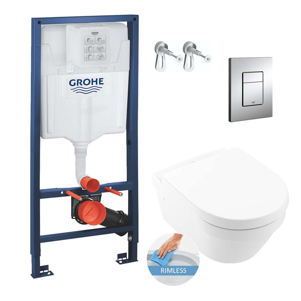 Grohe Toilet Pack Rapid SL Frame + Villeroy & Boch Architectura Rimless Toilet + Chrome Flush Plate (RSLARCHI21)