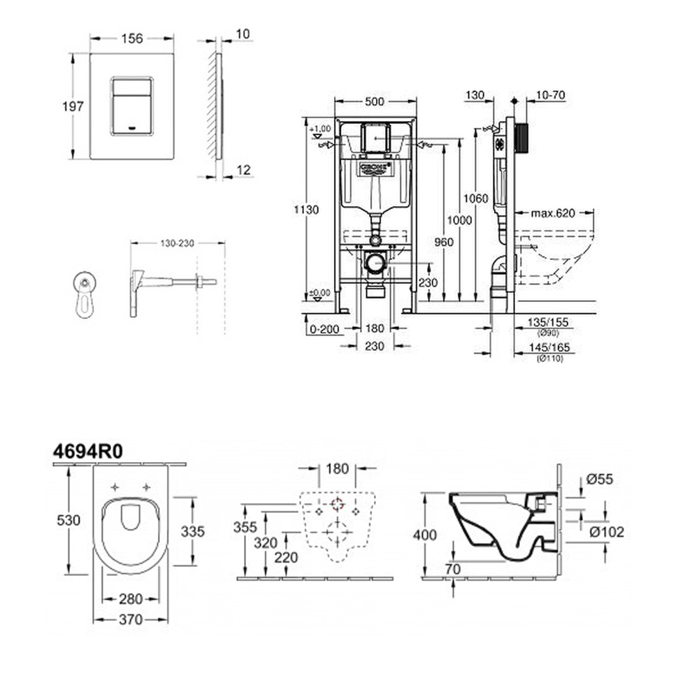 - Grohe Rapid SL Support Frame for wall-hung toilets (38528001)