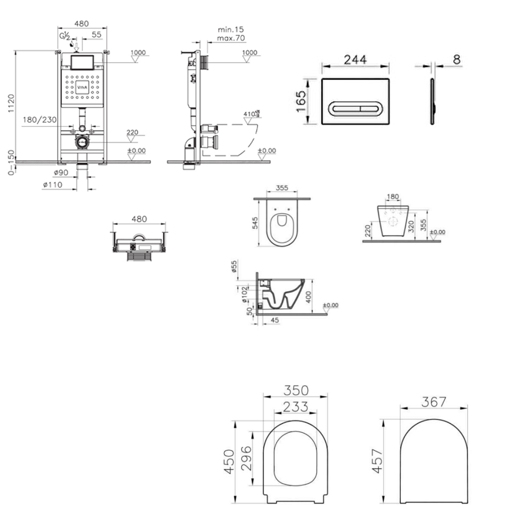 Features of Vitra Toilet Pack V-Fix Frame + Integra Rimless Wall-Hung Toilet + Soft-Close Seat + Matt Black Flush Plate (V-FixIntegra-B):