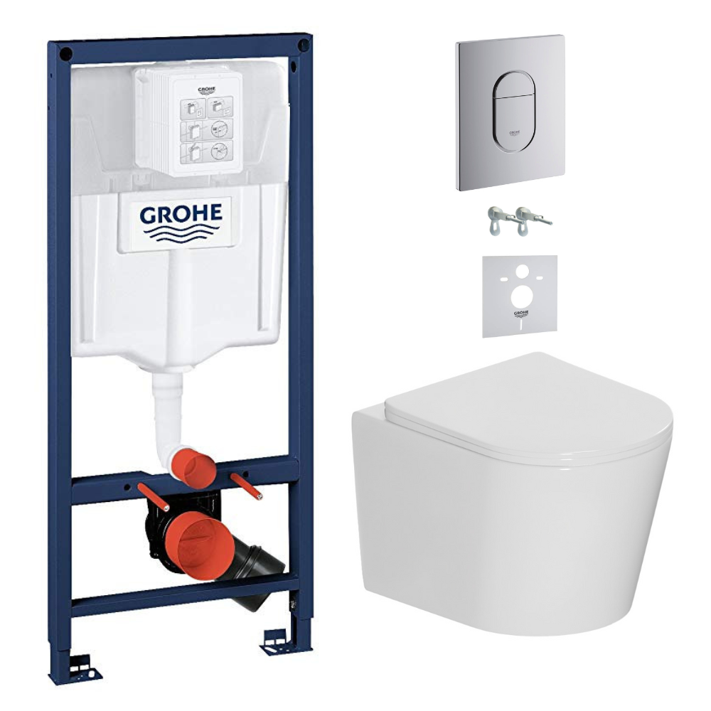 Grohe Rapid SL wall-mounted toilet + Rimless wall-mounted toilet + SoftClose seat + Soundproofing + Chrome plate (ARENACETOR)