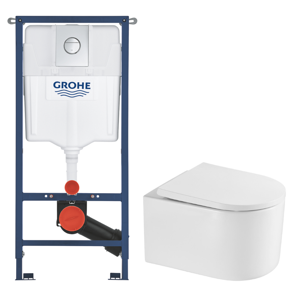 Grohe Solido 4-in-1 built-in WC Frame + Swiss Aqua Technologies rimless wall-hung WC with SoftClose seat + plate (GRRST72WT01-IN)