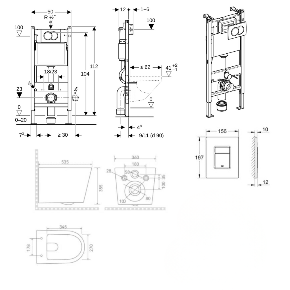 - Type of bowl: bowl Rimless wall-hung