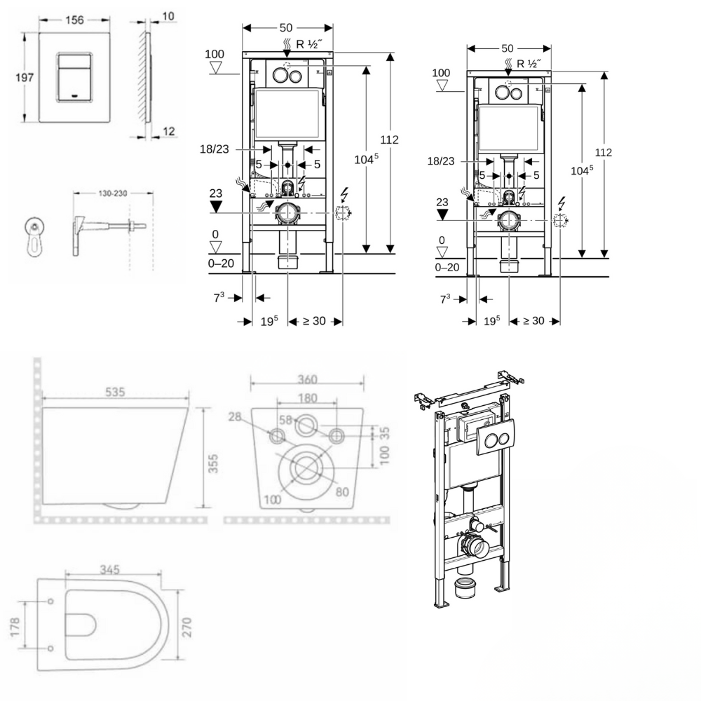 - Geberit Duofix 112 cm frame-mounted toilet pack + Delta20 alpine white flush plate + wall brackets (458.134.11.3)