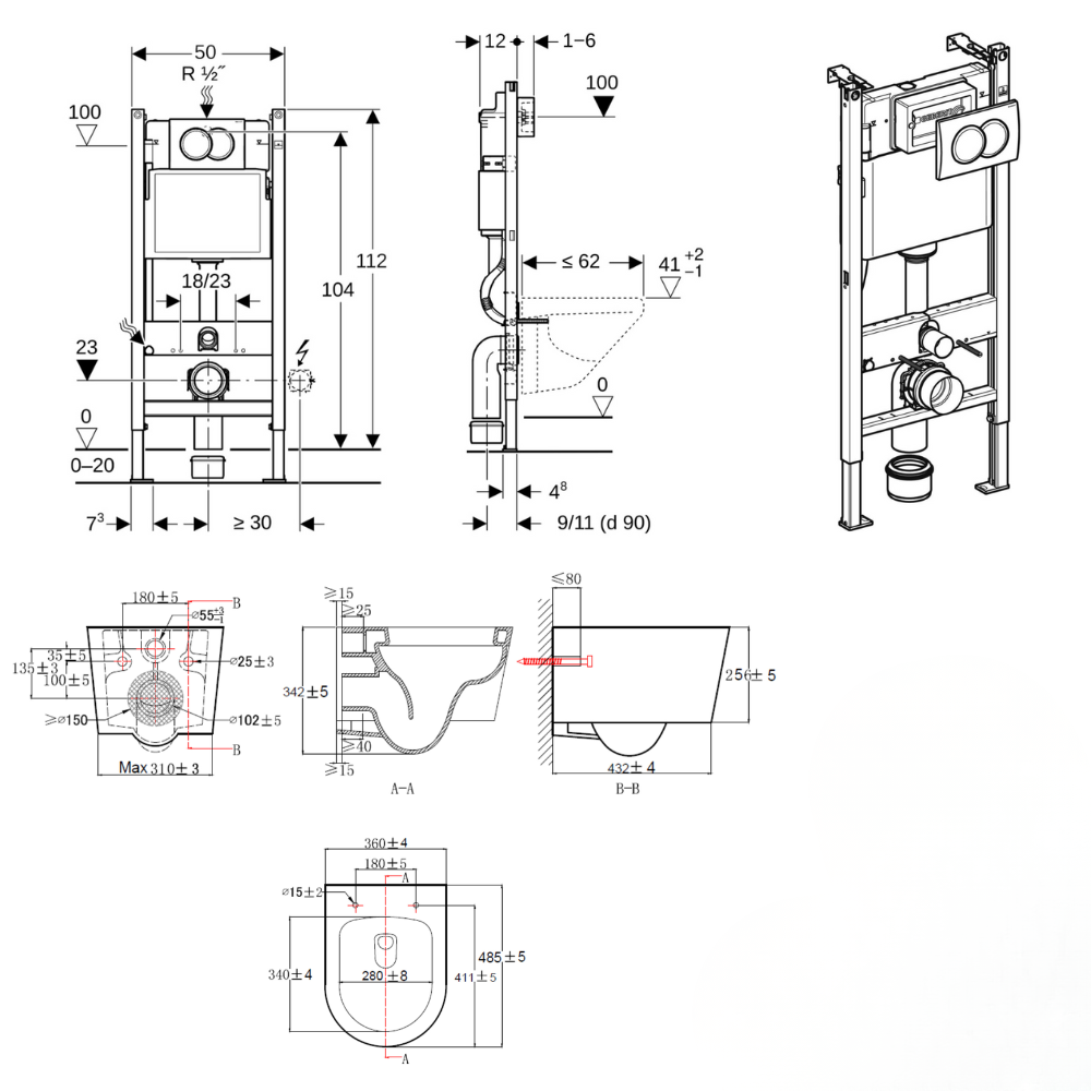 - Swiss Aqua Technologies Rimless wall-mounted toilet with concealed fixings + soft-close seat (SATBRE010RREXP)