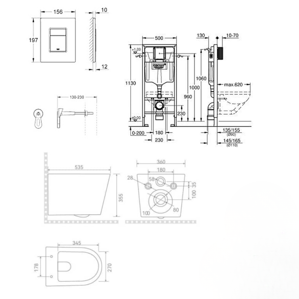 - Grohe Rapid SL frame-mounted toilet + chrome plate (38772001)