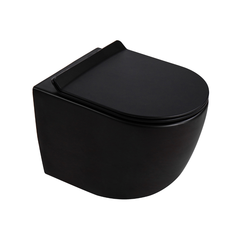 - Ceramia PixL ceramic wall-mounted toilet, rimless, Tornado, concealed brackets + SoftClose seat, black (CEPX010RTORPBKM)