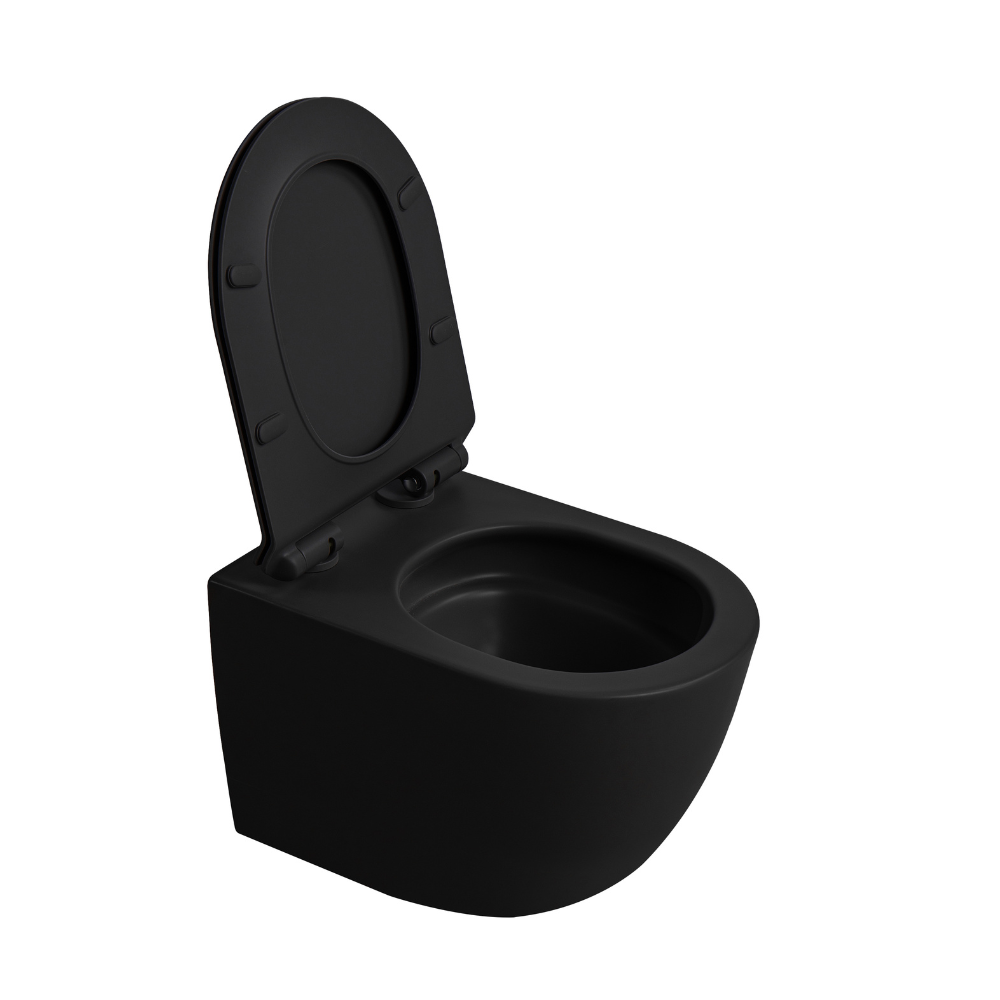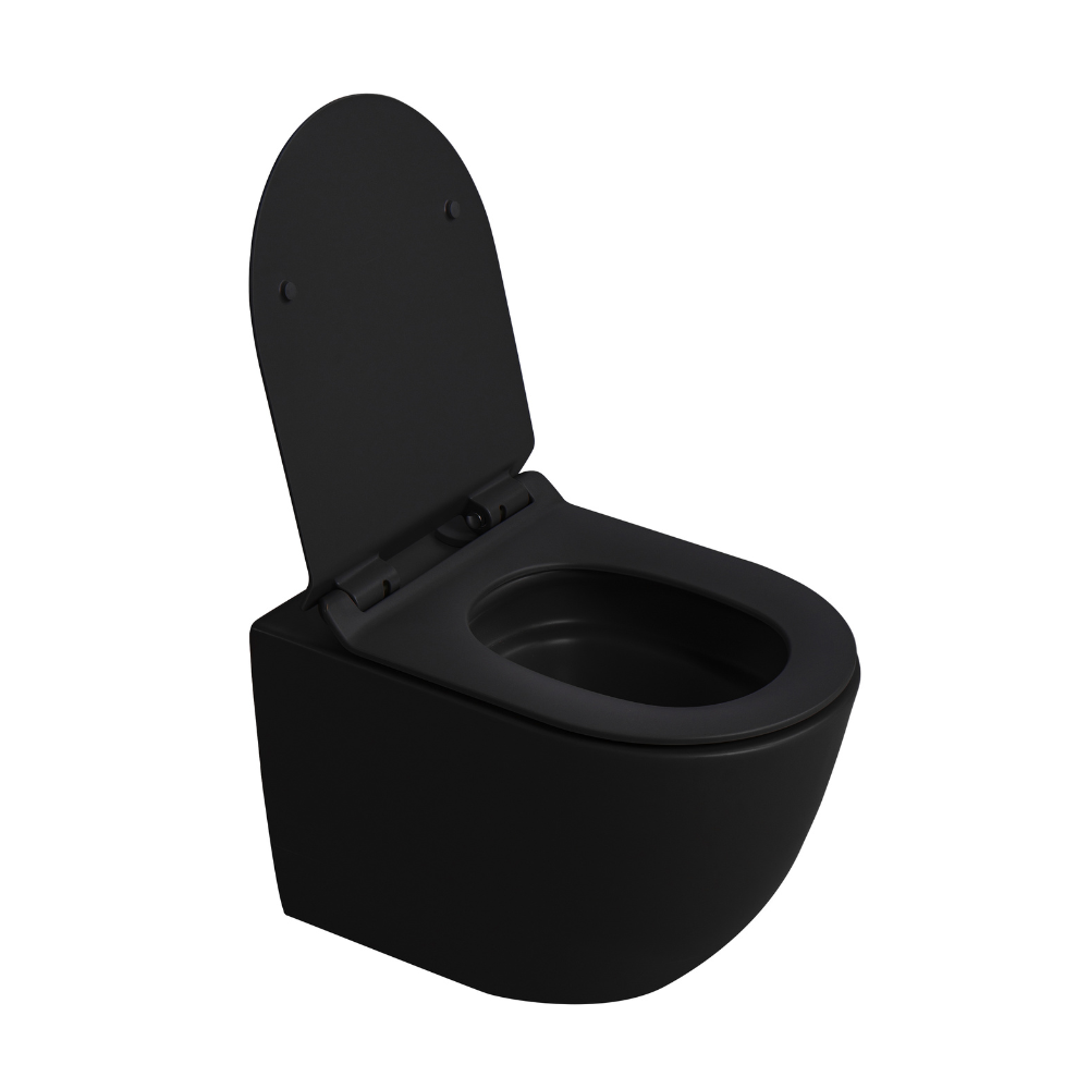 - Ceramia PixL ceramic wall-mounted toilet, rimless, Tornado, concealed brackets + SoftClose seat, black (CEPX010RTORPBKM)