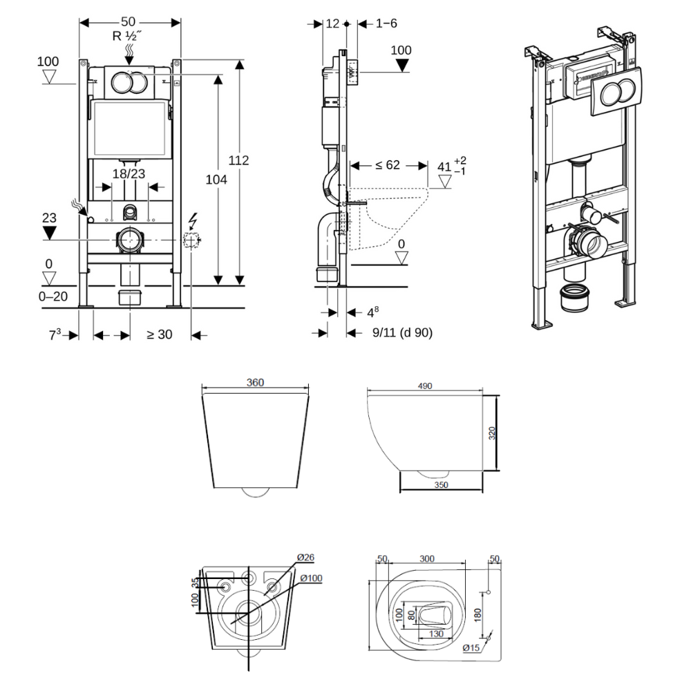 - Geberit Geberit Delta Duofix 112 cm frame-mounted toilet pack + Delta01 flush plate, white + wall brackets (111.154.11.2)
